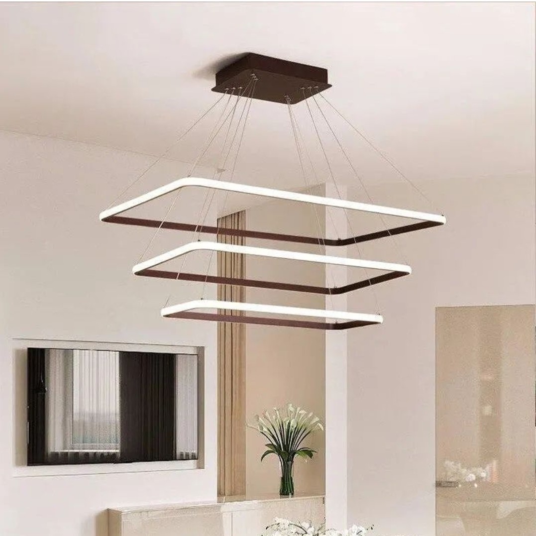 لوستر مدرن مستطیل سه طبقه چهار حالته دارای ریموت کنترل دیمردار و اپ موبایل مبلمونسرا مدل 244389