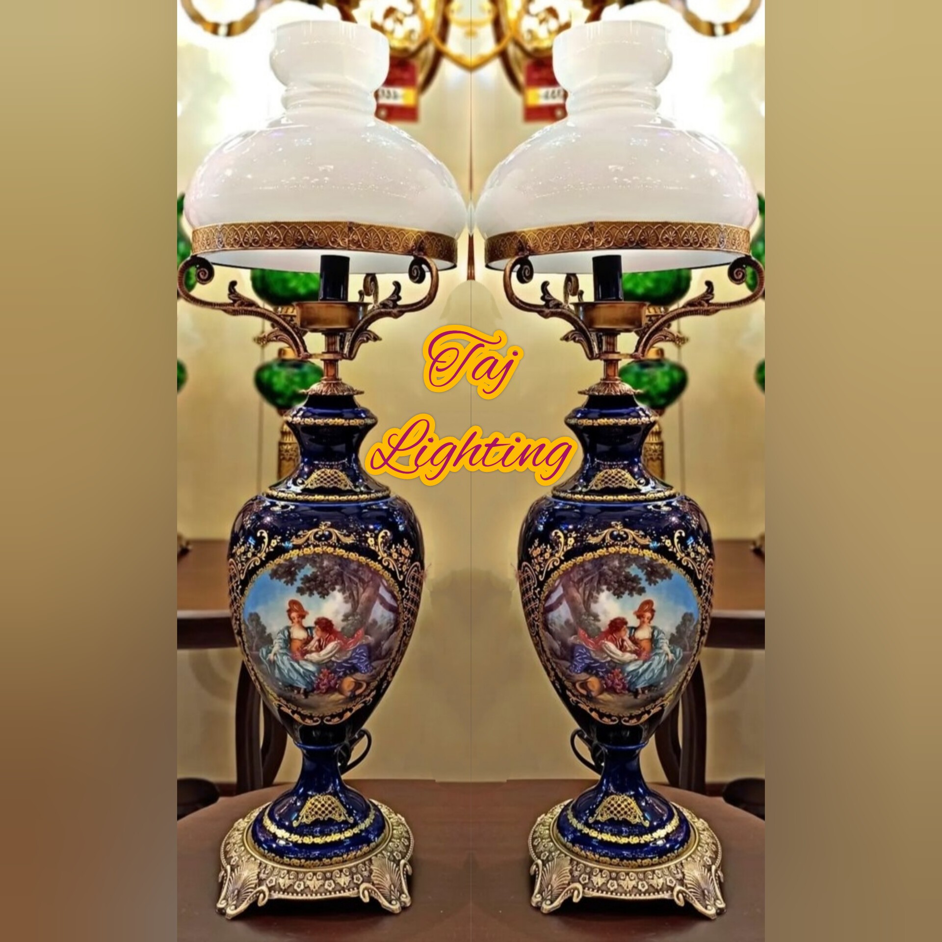 آباژور چراغ رومیزی طرح لیلی و مجنون مدل امپریال با حباب قالپاقی مبلمونسرا مدل 233080