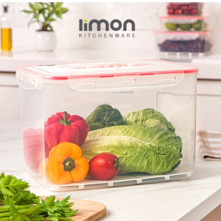 ظرف نگهدارنده لیمون مدل 14 لیتری ا ظرف نگهدارنده چهار قفله لیمون با ظرفیت 14 لیتر و دارای واشر سیلیکونی دور درب به منظور ممانعت از ورود هوا به داخل ظرف جنس: پلاستیک ابعاد: عرض: 25cm طول: 35cm ارتفاع: 23cm حجم: 14 لیتر
