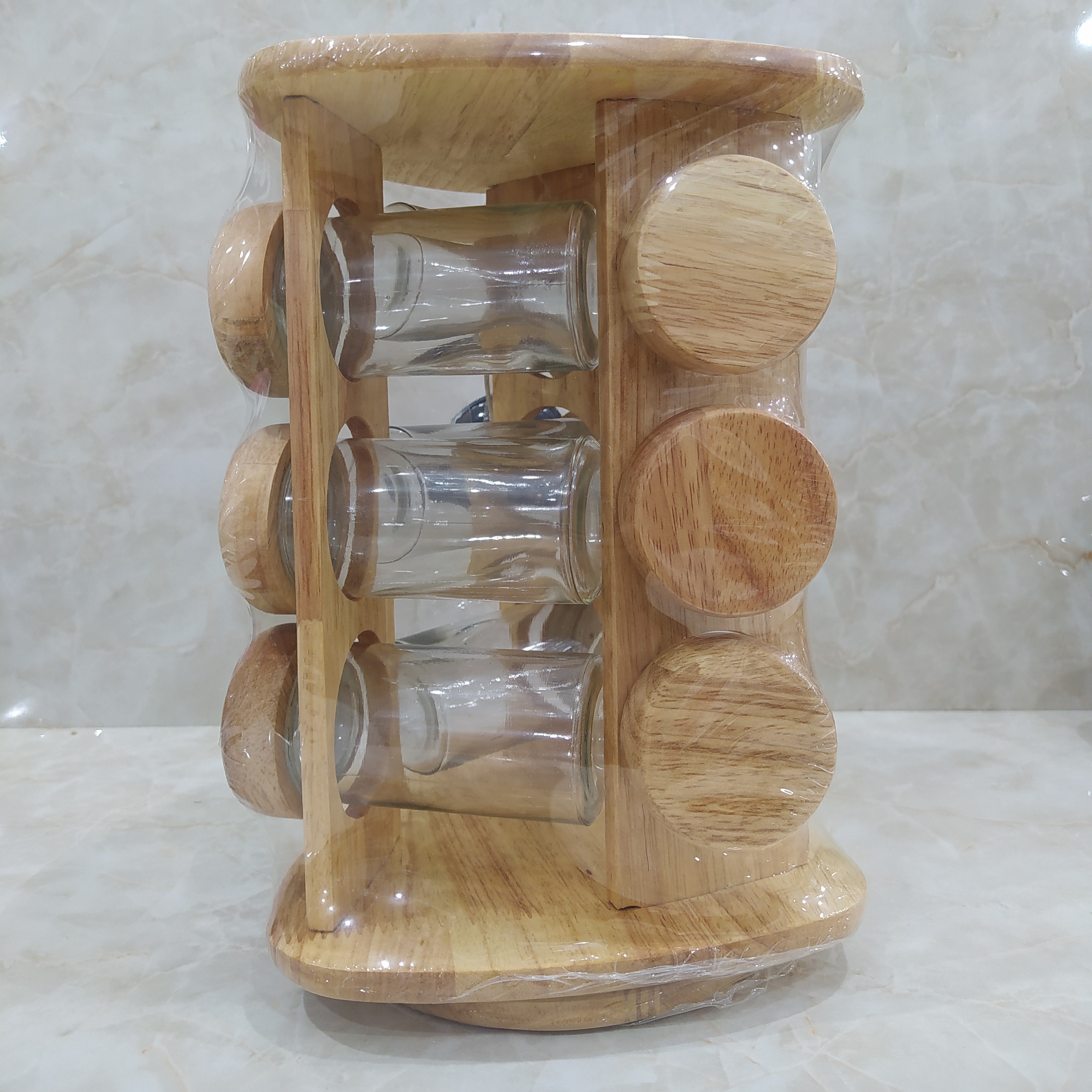جا ادویه 9 تایی شیشه ای درب چوبی با پایه چوبی گردان پلاسکو سحر دارای 5000قلم لوازم آشپزخانه برای اطلاعات بیشتر با غرفه دار گفت و گو کنید