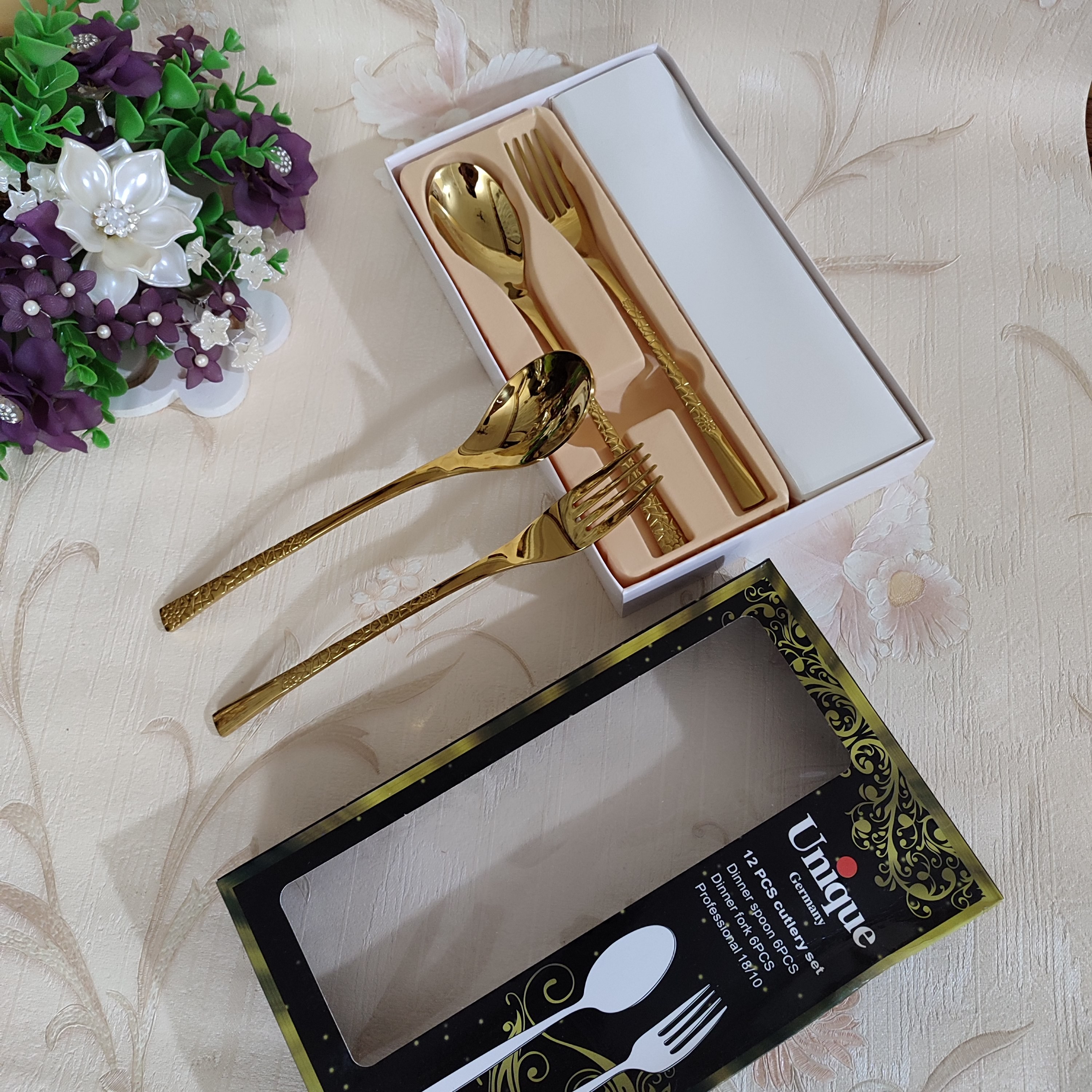 قاشق چنگال غذاخوری استیل فالکون طلایی مارک یونیک جنس عالی لطفاً قبل از سفارش موجودی بگیرید