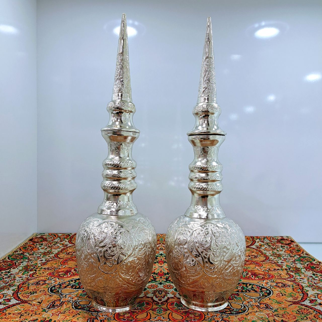 تنگ شاخدار و شکلات خوری نقره نما ، اثر هنری استاد زارعی میباشد که زیر دستان ایشان به ریز ترین و ظریف ترین شکل ممکن و با حساسیت زیاد در طرح گل و مرغ قلمزنی شده است نقره نما برای استفاده در منازل ایرانی طراحی و تولید شده است، که طرح گل و مرغ نقره نما ، ظاهر بسیار اصیل و شَکیل به آن داده تا از آن بتوان در هر چیدمانی استفاده نمود. قلمزنی و زیر ساخت نقره نما کاملا و به صورت صفر تا صد هنر دست میباشد ، که زیر دست بهترین استادکاران و هنرمندان تولید میشود که بدلیل دست ساز بودن ارزش هنری و معنوی دارد کیفیت قلمزنی و ساخت محصول در حد نقره میباشد که با بهترین متریال و کیفیت آبکاری نقره میشود که به دلیل داشتن روکش محافظ نانو پُلی استر باعث میشود محصول در مدت زمان های طولانی در آب و هوای مختلف تغییر رنگ ندهد • قابل شستشو • تغییر رنگ نمیدهد • دکوری • مناسب جهیزیه • مناسب کادویی • مناسب میز کنسول و... به دلیل تنوع در سایز و نوع قلم و همینطور متغییر بودن وزن محصول ، قبل از سفارش هماهنگی کنید راهنماییتون کنم با تشکر🙏🏻🌹🌹🌹 ✅️از این ست هر کدام به صورت جدا و در سایز های مختلف موجود میباشد✅️