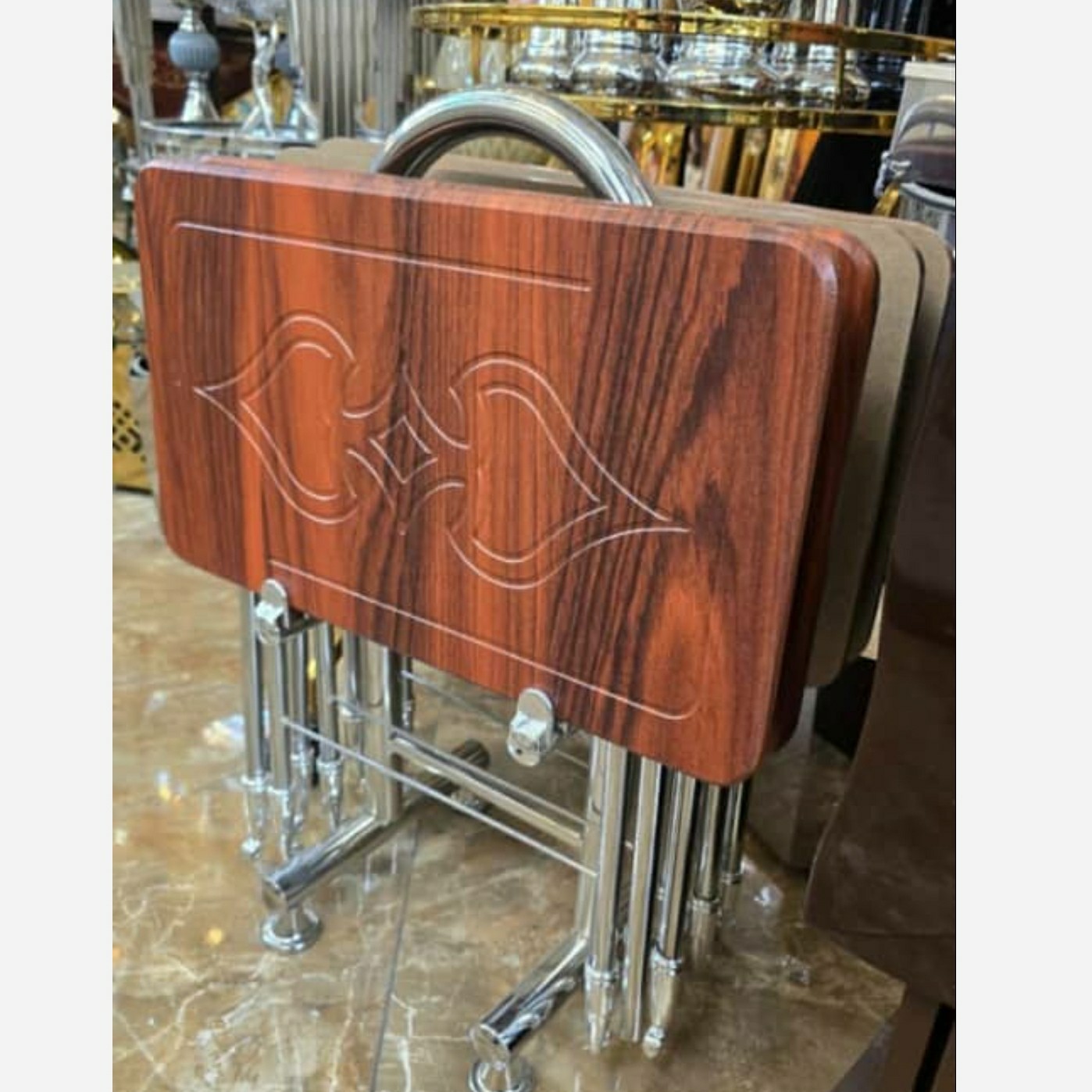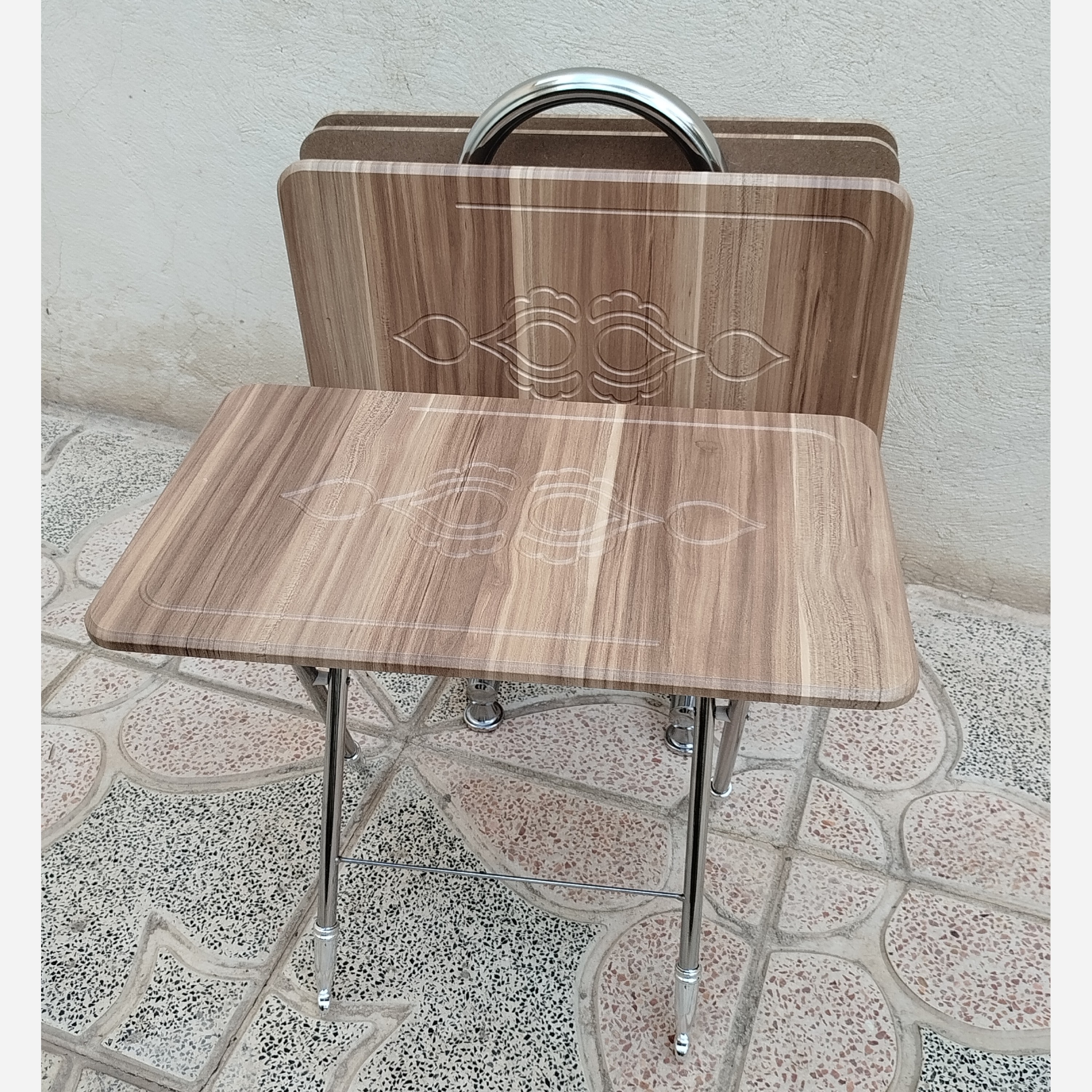 عسلی تاشو پایه فلزی چهار عددی عسلی چمدانی مبلمونسرا مدل 223049