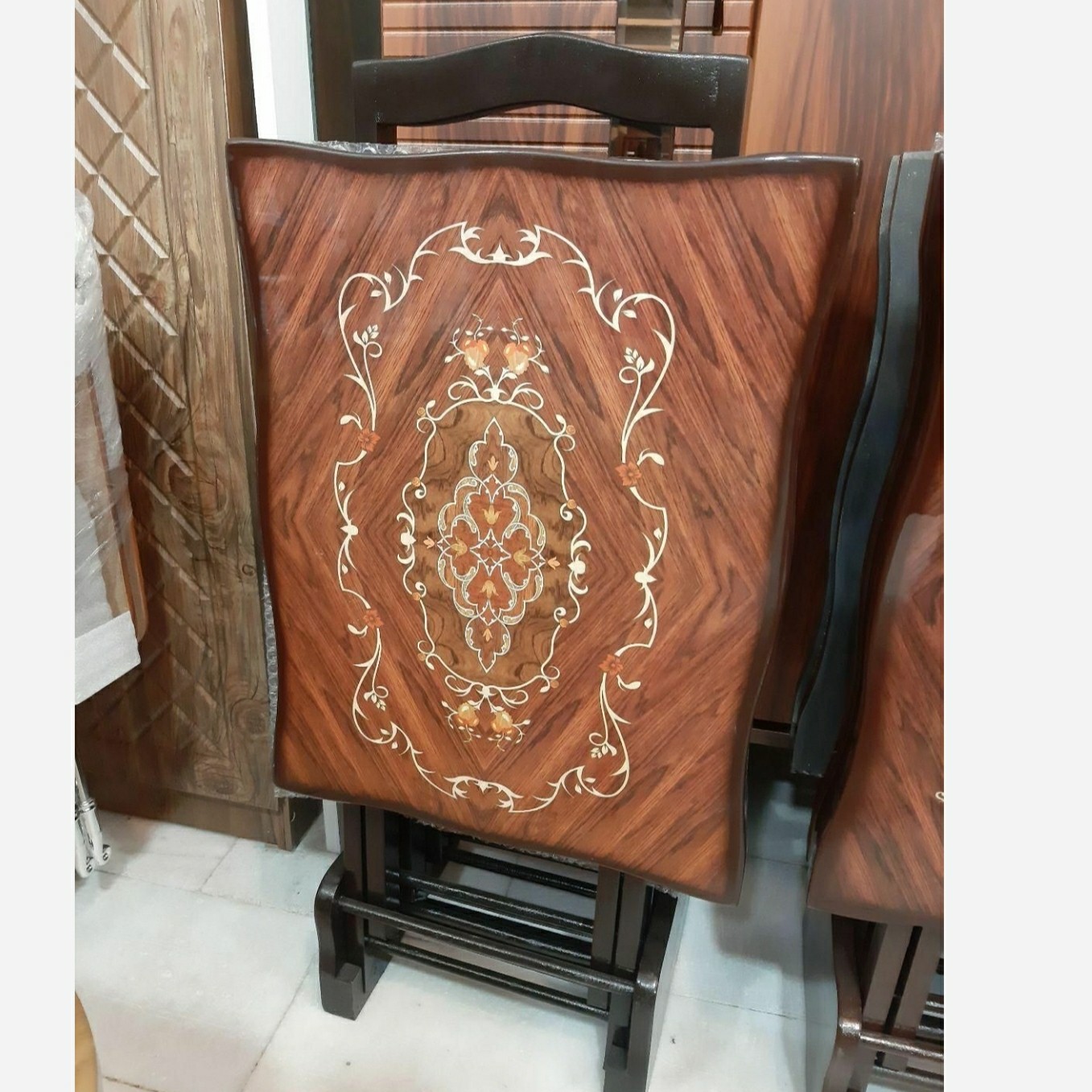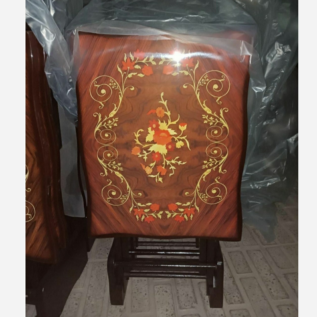 میز عسلی معرق تاشو چمدانی کمجا 4عددی مبلمونسرا مدل 224033