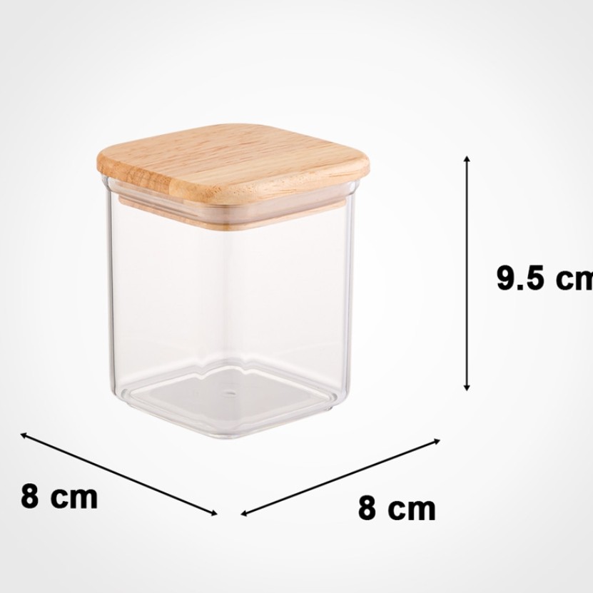 جا ادویه چهارگوش سارینا 3 درب چوبی لیمون، بدنه ی آن از جنس اکریلیک و درب آن چوبی، دارای گنجایش 270 میلی لیتر است. این محصول جهت نگهداری انواع ادویه جات مناسب می باشد. وجود واشر دور درب این محصول مانع از ورود هوا به داخل بانکه می شود.