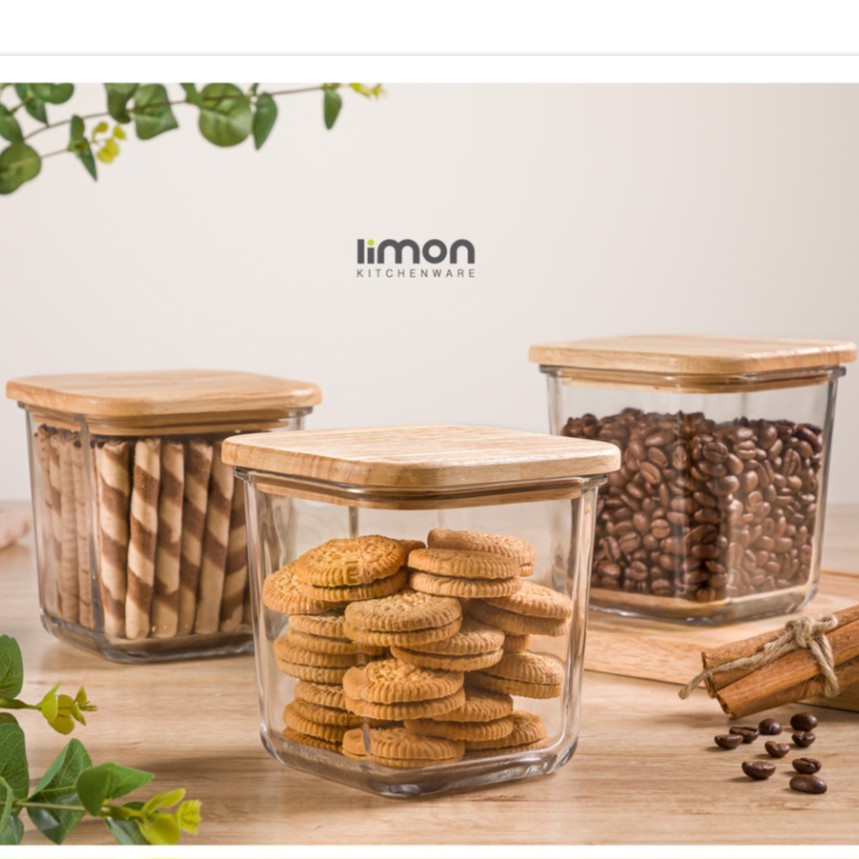 ظرف شیشه ای 860 میلی لیتر در چوبی لیمون مبلمونسرا مدل 274254