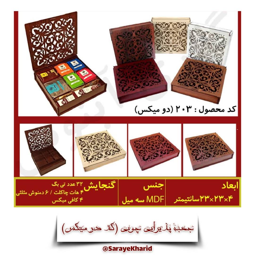 لطفاً قبل از خرید به نکات زیر توجه داشته باشید: ✓ توجه: ارسال به صورت میباشد و رایگان نیست و درب منزل از مشتری دریافت میشود ✓ قبل از خرید، حتما موجودی بگیرید. ✓ رنگ و مدلهای موردنظرنان را از طریق بخش گفتگو مشخص فرمایید ، در صورتی که مشخص نفرمایید، یکی از رنگها و مدلهای موجود به انتخاب فروشنده ارسال میشود جعبه کد #دو_میکس #کد_دو_میکس جعبه پذیرایی میکس👌 ابعاد حدودی: 23×23 ارتفاع 4 سانت ظرفیت 32 تی بگ معمولی، 5 الی 6 تی بگ مثلثی، 4 هات چاکلت و 4 کافی میکس جنس چوب مناسب برای پذیرایی و دمنوش ، شکلات ، آجیل ، تنقلات و همچنین مناسب هدایای کوچک سازمانی و... اگه خوشت اومد، بفرست برای دوستات به در باسلام بپیوندید sarayekharid #جعبه_چوبی #میوه_خشک #آجیل #شکلات #دمنوش_مثلثی #شب_یلدا #چله #شب_چله جعبه چوبی میوه خشک آجیل شکلات دمنوش مثلثی شب یلدا چله شب چله .ا.