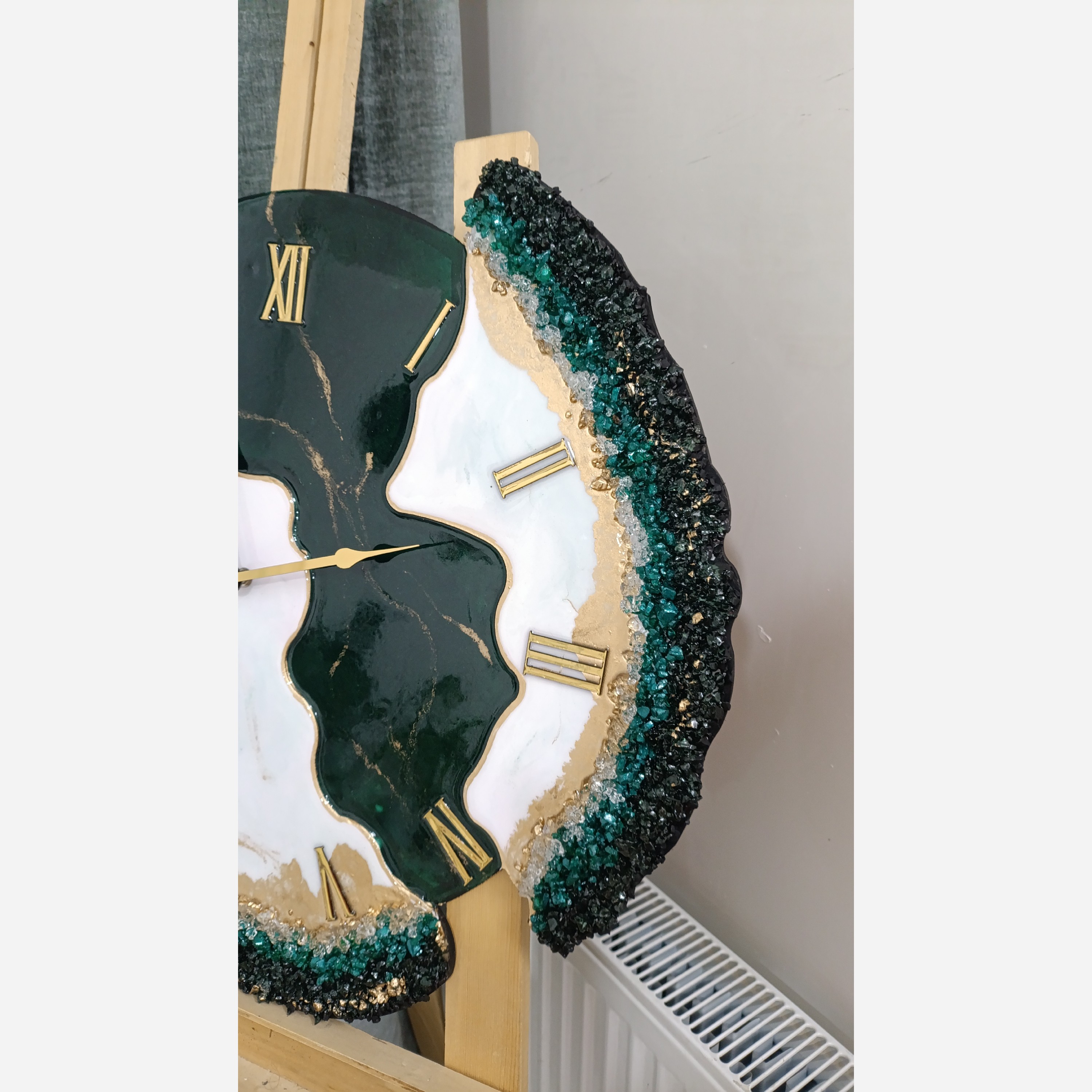 ساعت دیواری رزینی .سایز 60 در طرح ورنگ وسایز متنوع قابل سفارش میباشد.با موتور تایوانی آرامگرد.لطفا دقت بفرمایید تغییر چند درجه ی رنگ بخاطر عکاسی با دوربین وجود دارد بیس چوبی کمی متفاوت هست با نمونه ژورنالی