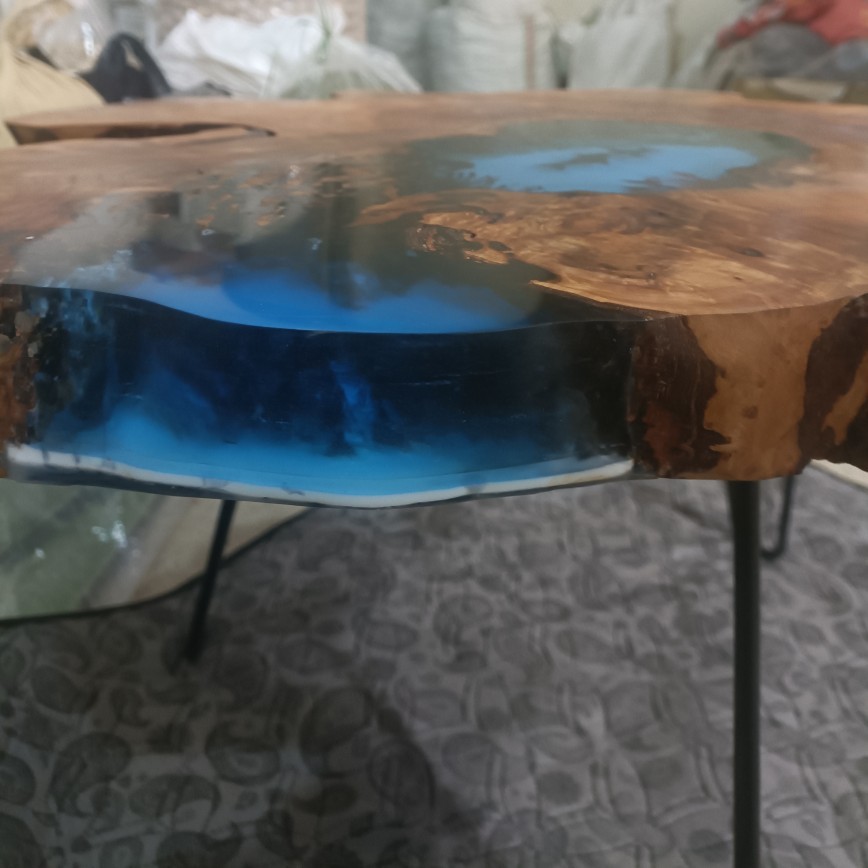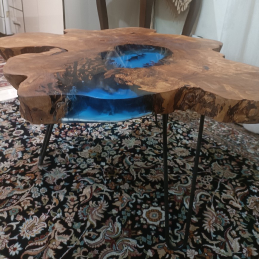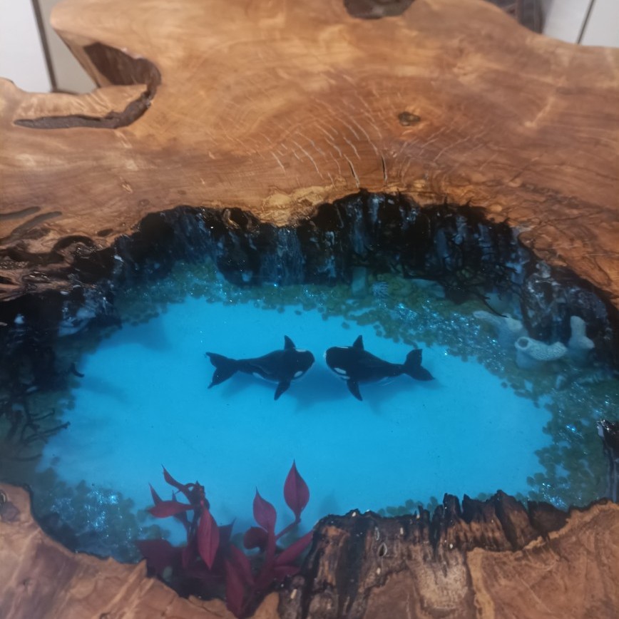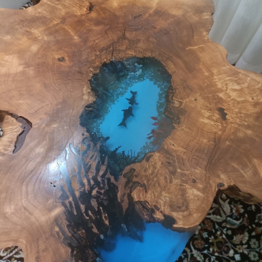 میز جلومبلی روستیک ساخته شده از چوب توسکا با طرح نهنگ و دریا با ابعاد 70 در 80 رزین اپوکسی پر شده با پوشش مونوکود