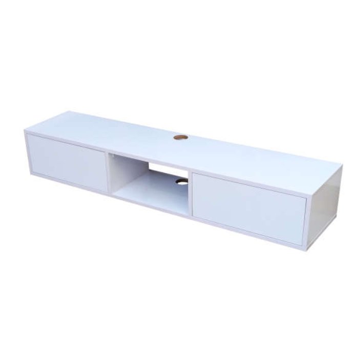 میز تلوزیون دیواری با درب مگنتی داشبردی در دو رنگ سفید و گردویی مبلمونسرا مدل 222099