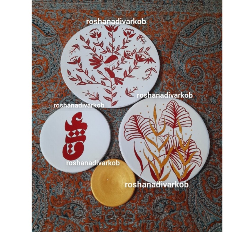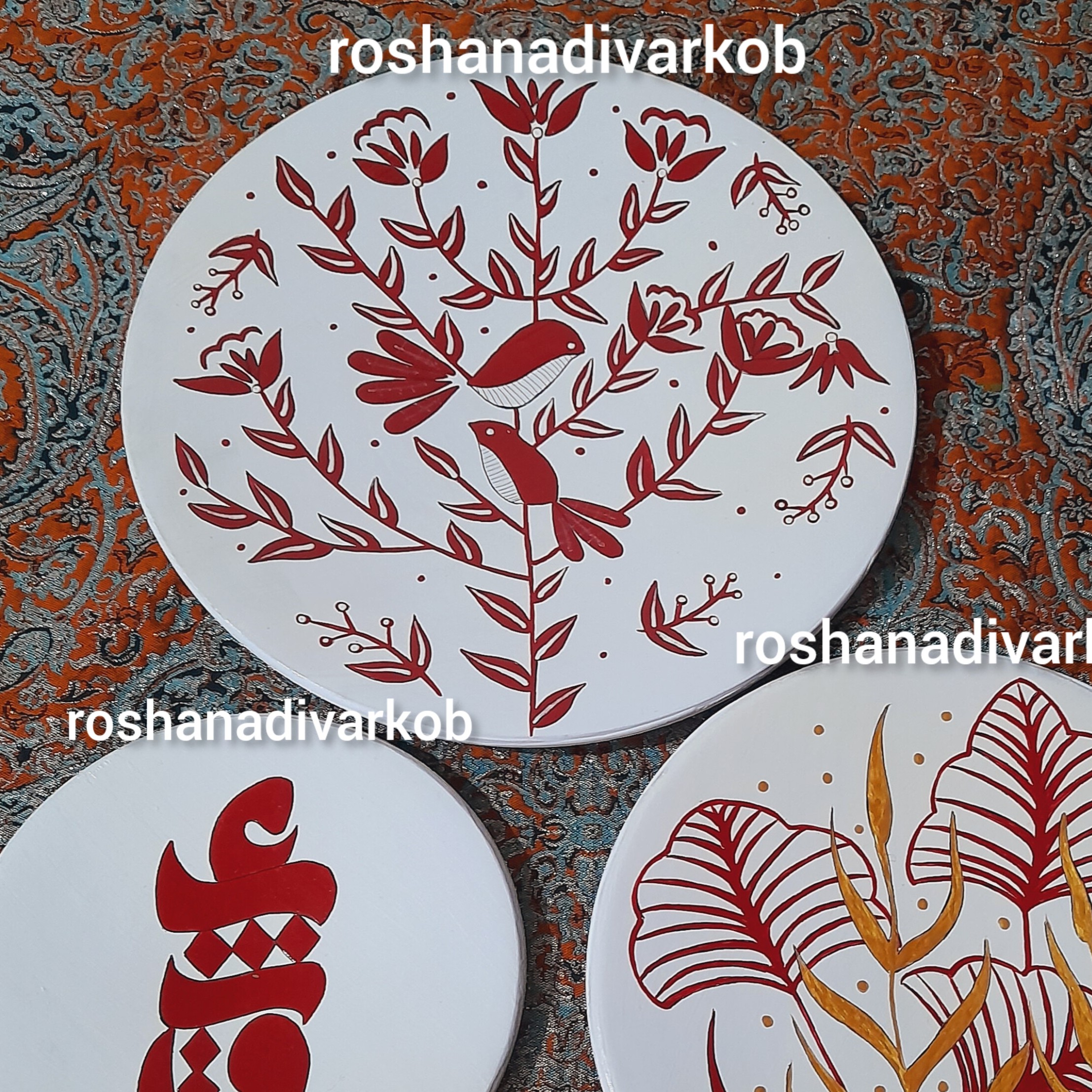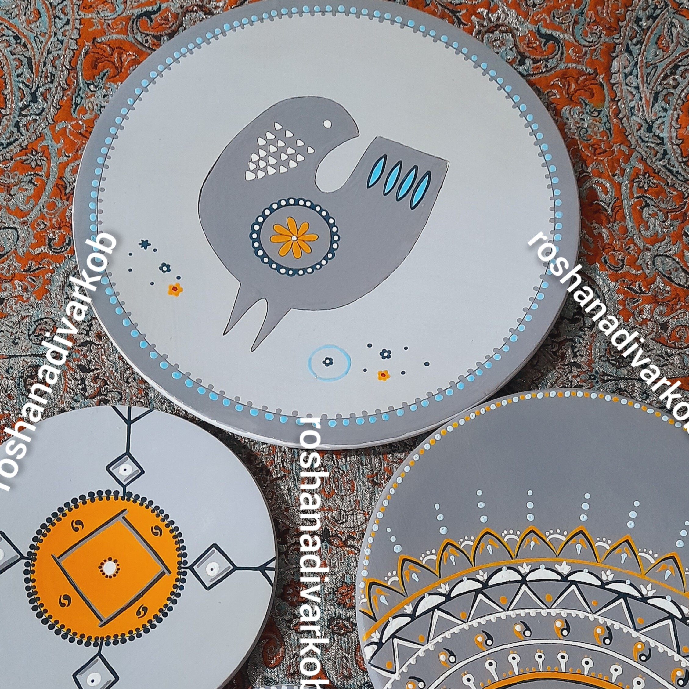 ست هشت عددی براق هنر دست و قابل شست و شو سفالی سرامیکی دارای اویز برای متصل شدن به میخ ابعاد 25.25.20.20.10.15.15.10سانت