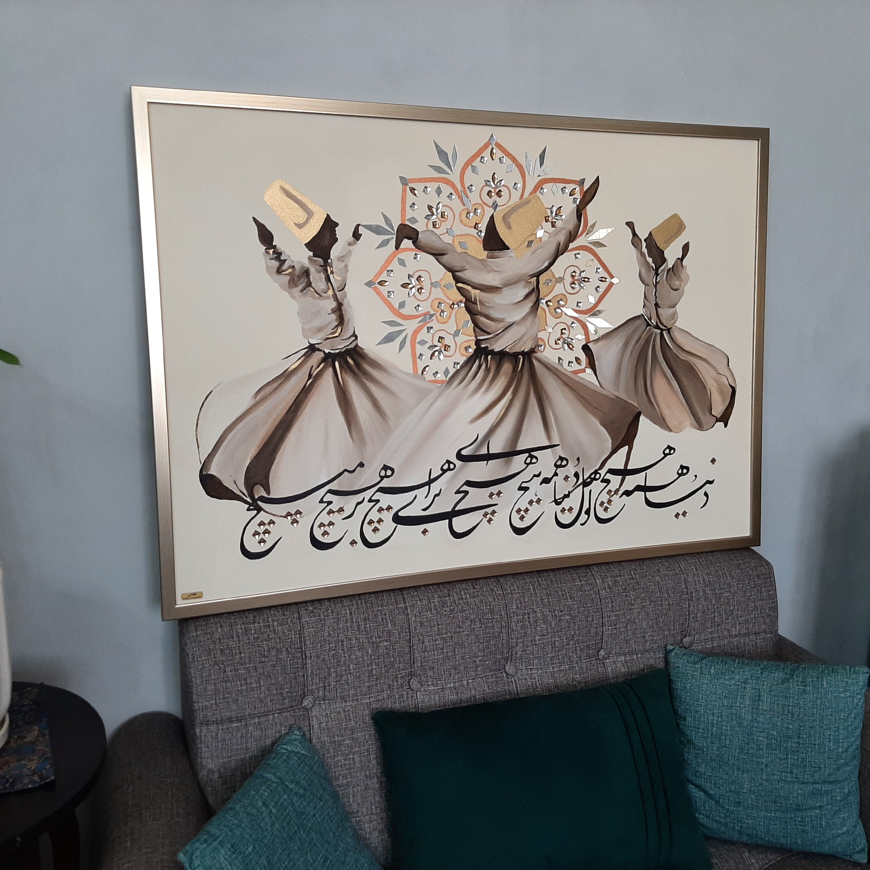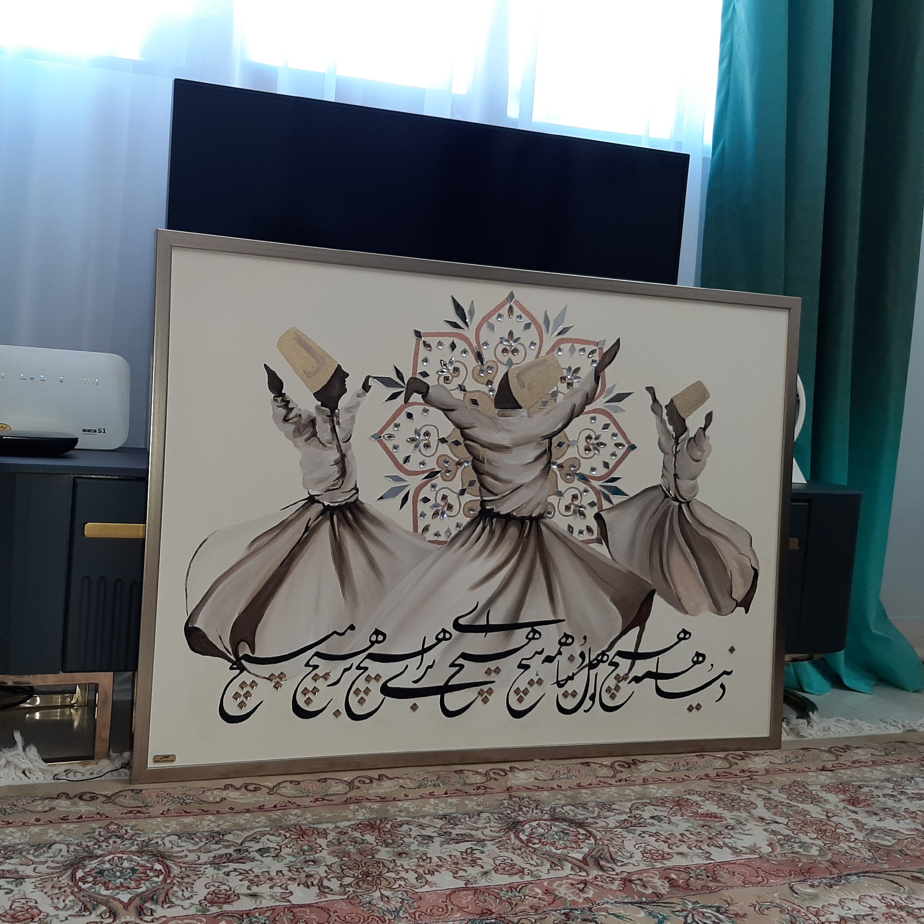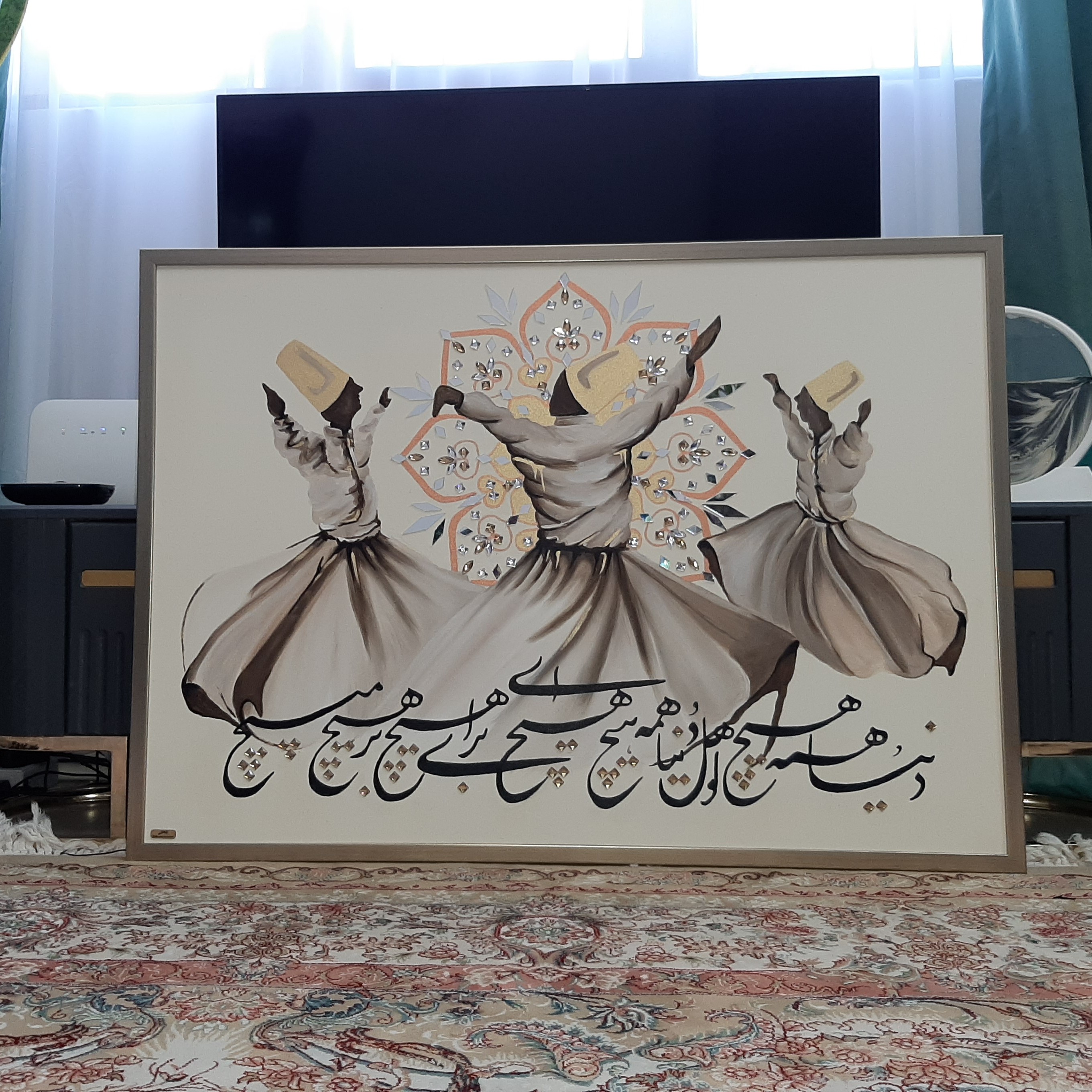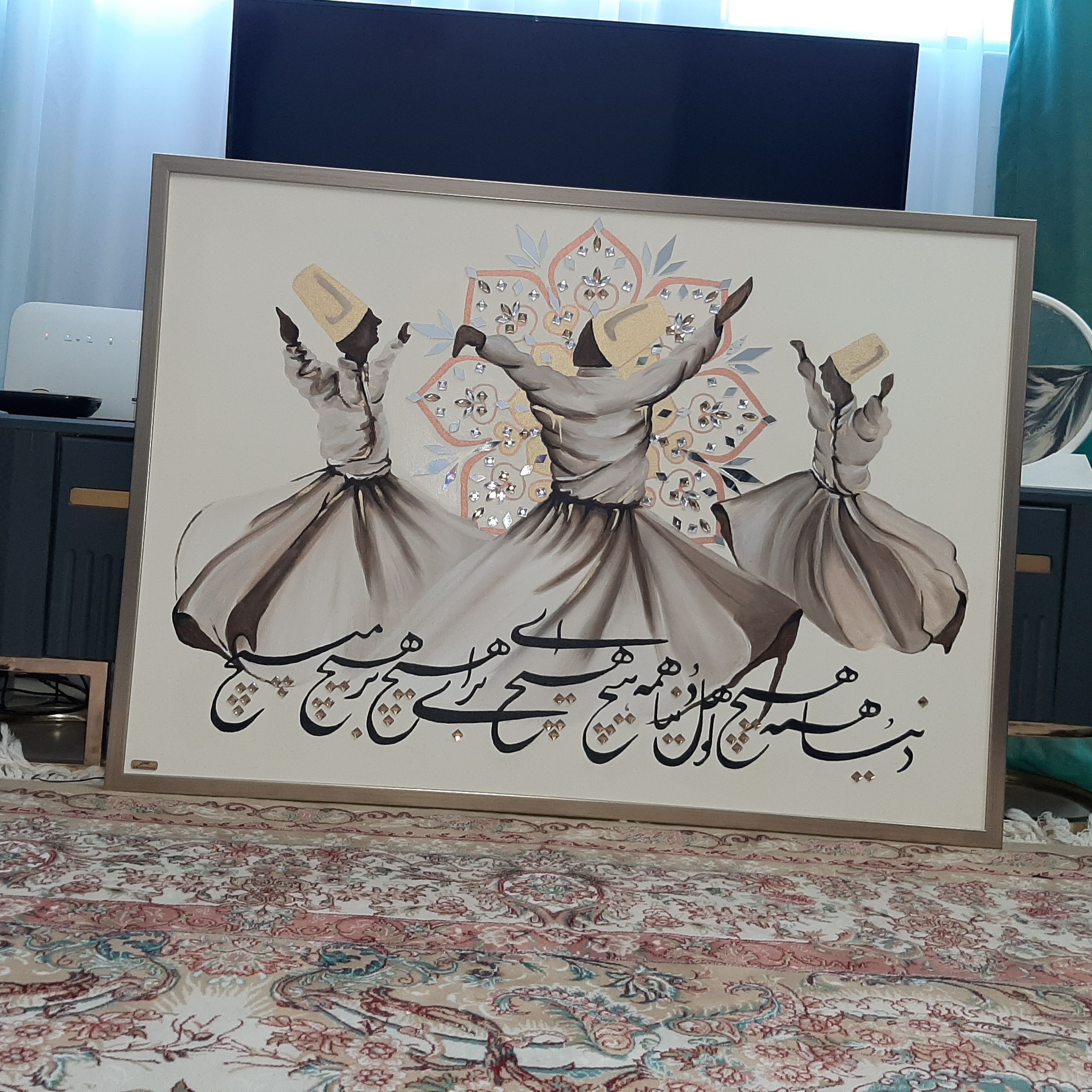 تابلو نقاشی رقص سماع سایز اینه کاری و نگین کاری میباشد قیمت بدون قاب میباشد شرایط برای همه تابلو ها هست مگر غیر از این ثبت شده باشد هزینه قاب جداست هزینه ارسال هست ممکن است ی مقدار تغییر در تابلو سفارشی شما وجود داشته باشد ک ب دلیل کیفیت عکس و کار دست بودن است اما تمیزی کار یکیست