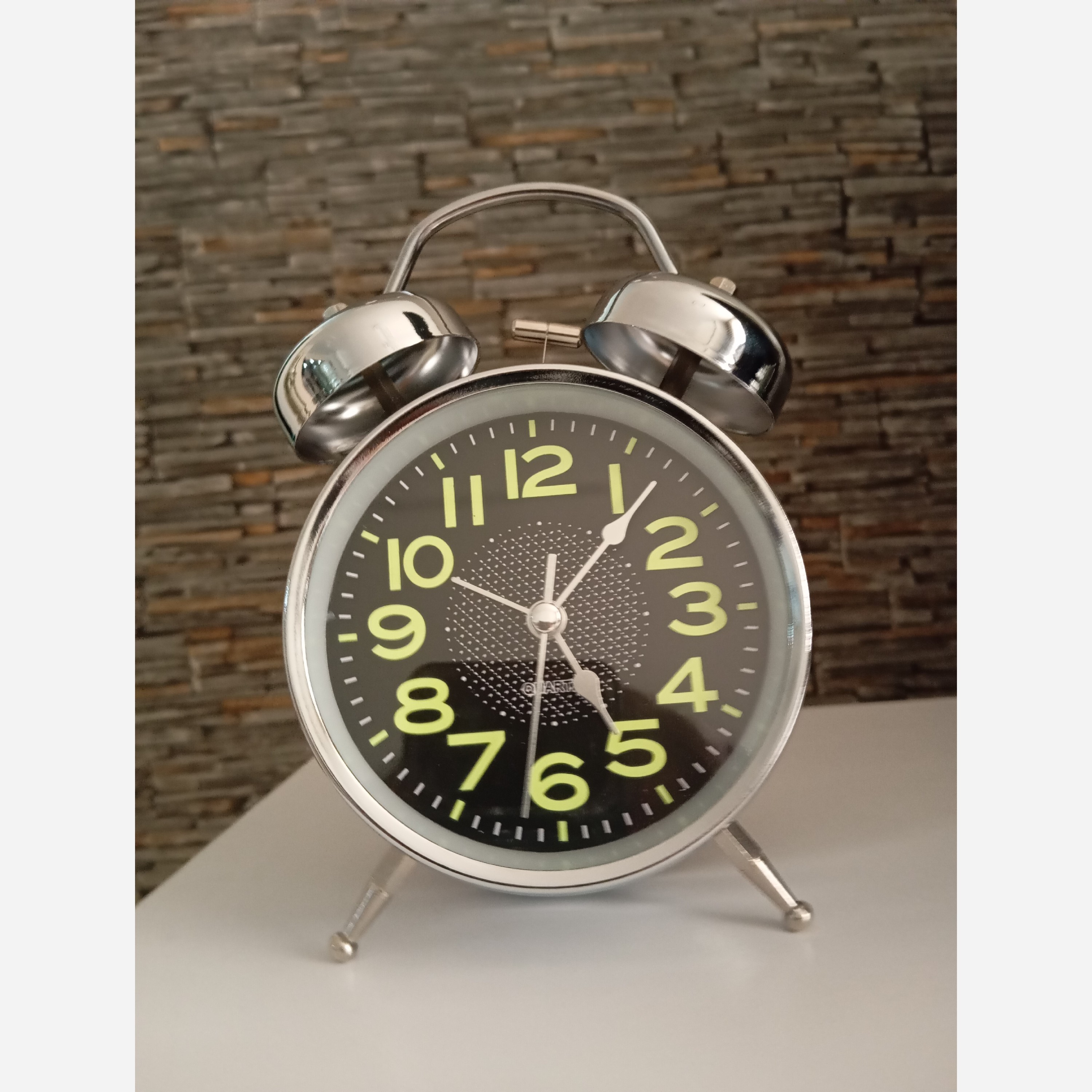 ساعت رومیزی استیل زنگ دار جنس بدنه استیل دارای چراغ خواب
