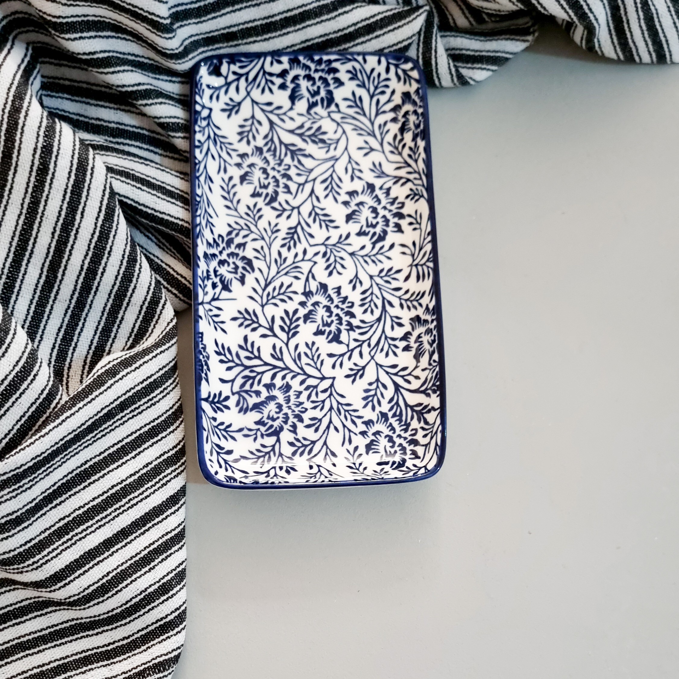 رولت خوری سرامیکی سایز 18 در 9 سانت شکوفه آبی برند پاشا هوم قابل استفاده در ماشین ظرفشویی و ماکروفر قیمت هر عدد مبلمونسرا مدل 279391
