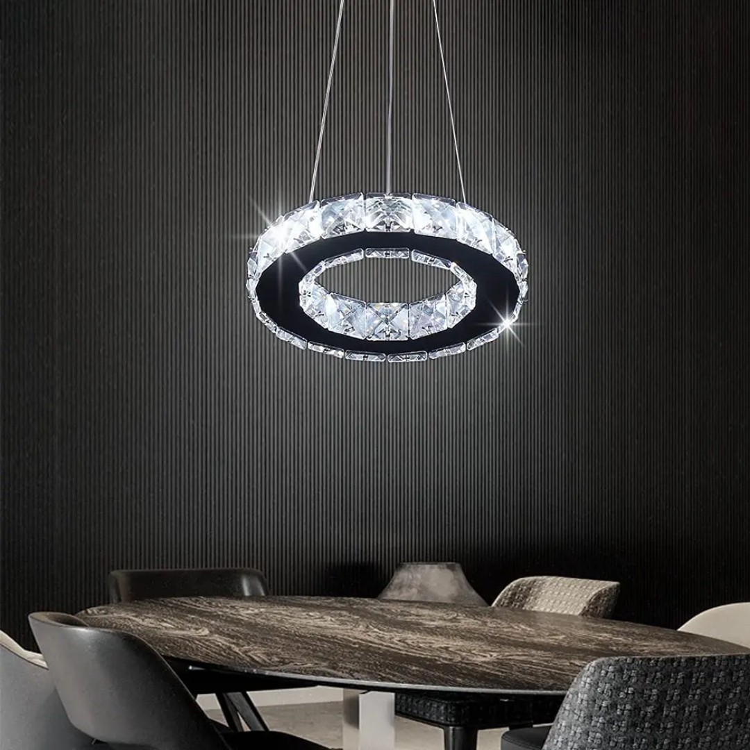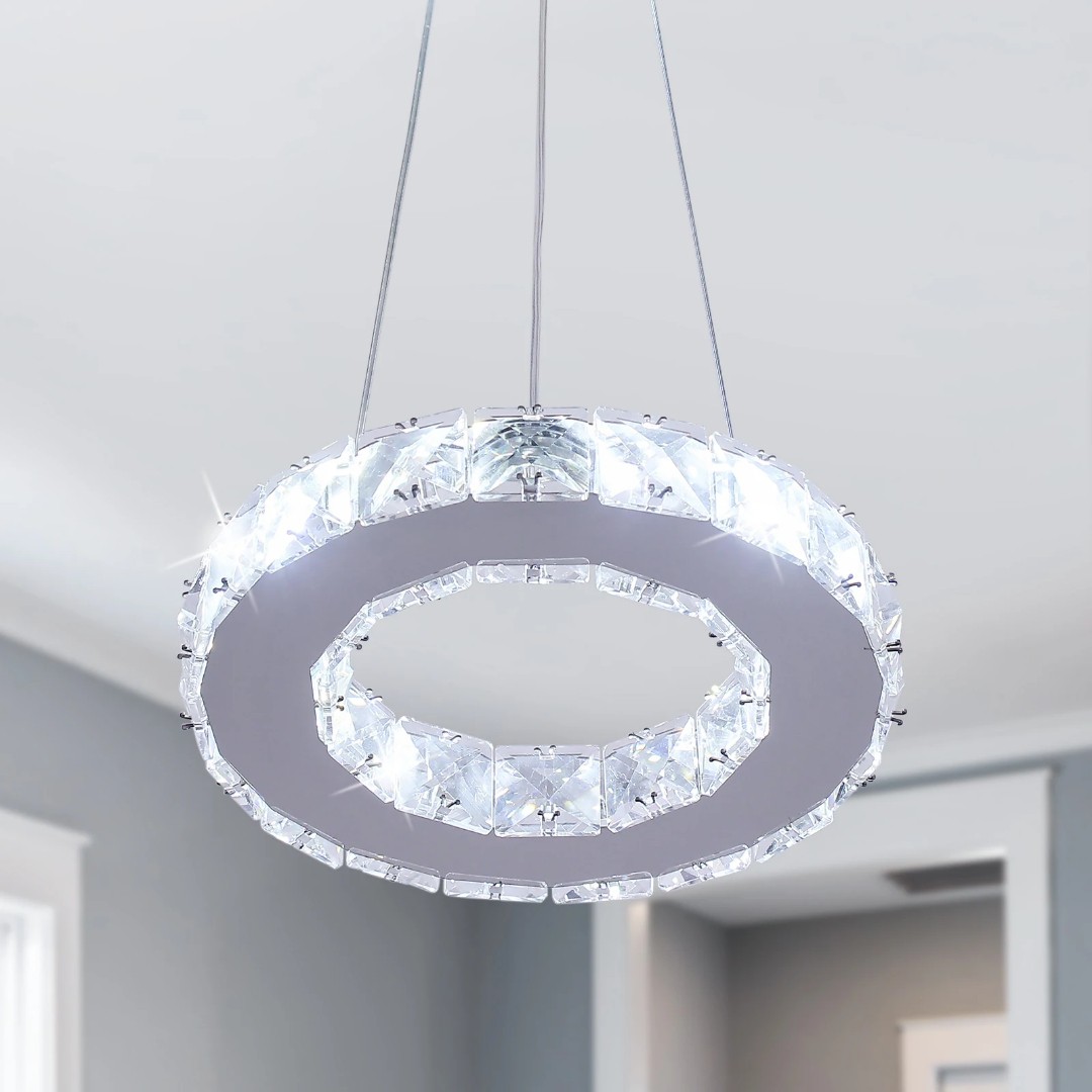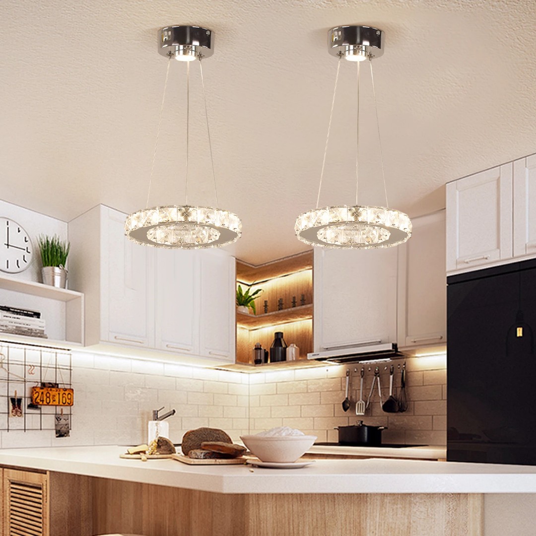 لوستر اویز مدرن کریستالی دایره 20 سانت رنگ استیل طلایی و نقره ای خرید از تولیدی مبلمونسرا مدل 244266
