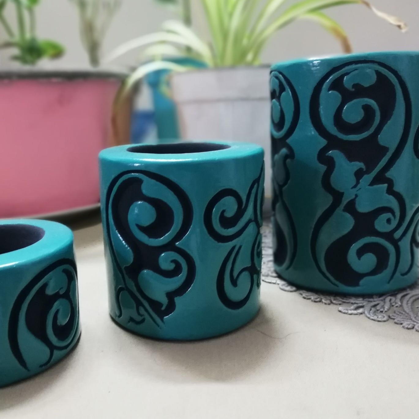 جاشمعی استوانه ای سه تیکه، بسیار شیک و زیبا، جعبه دار، در رنگهای طلایی، نقره ای، فیروزه،........