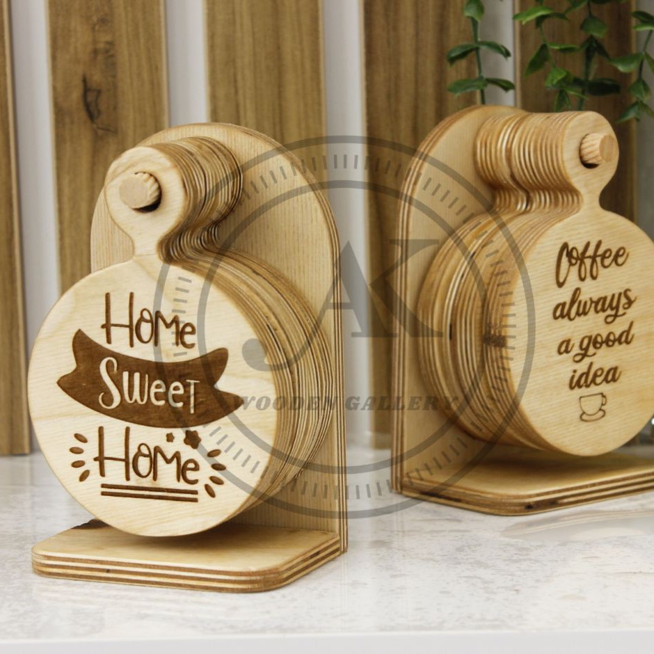 خرید با قیمت ارزان زیر لیوانی چوبی استند دار 4 عدد زیر لیوانی به همراه استند 1عدد زیر لیوانی حک شده+3عدد ساده ساخت ایران کیفیت عالی