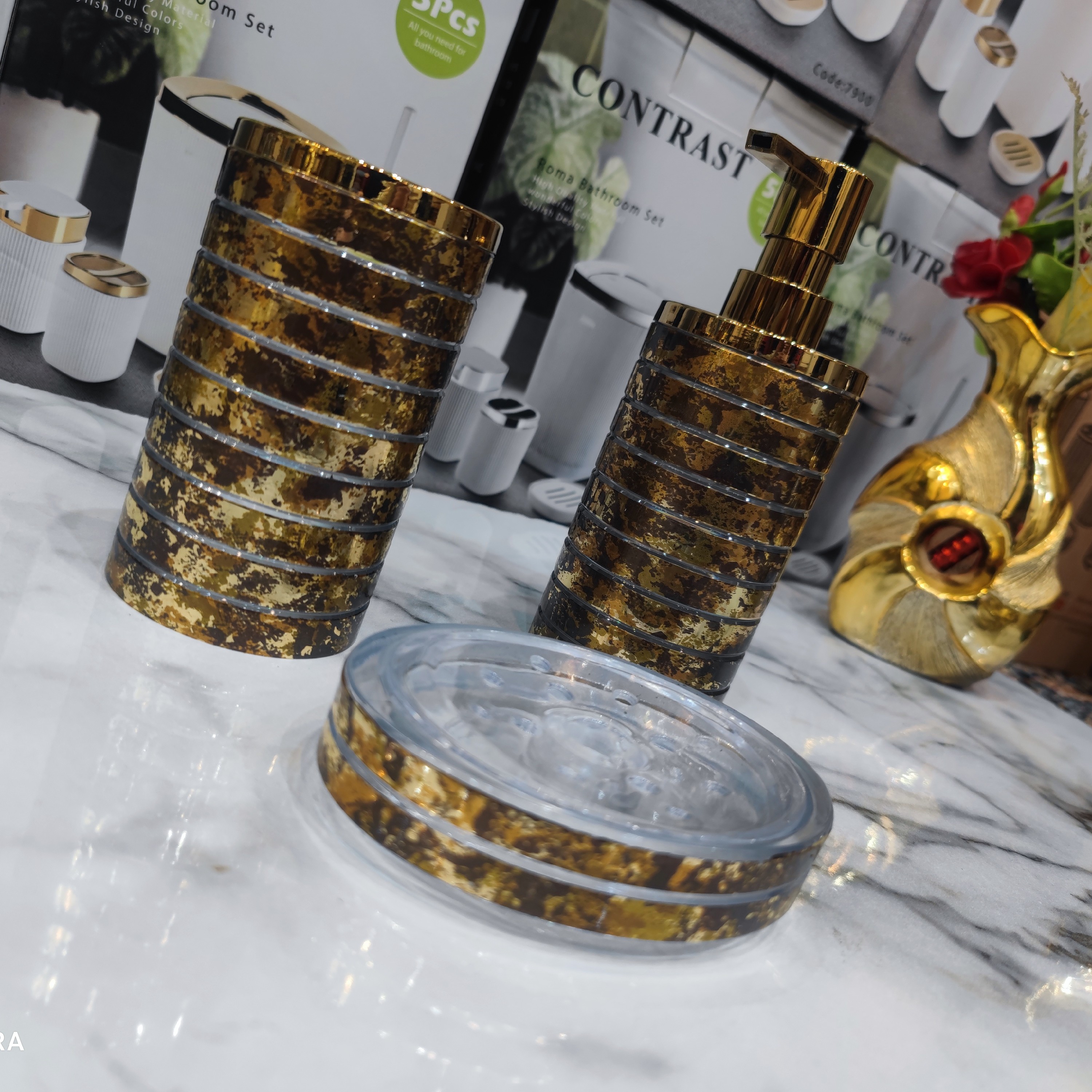 ست سرویس بهداشتی 3 پارچه طرح خط درشت رنگ زیبا و و جذاب و خاص و پرطرفدار سیاه قلم طلایی کنتراست