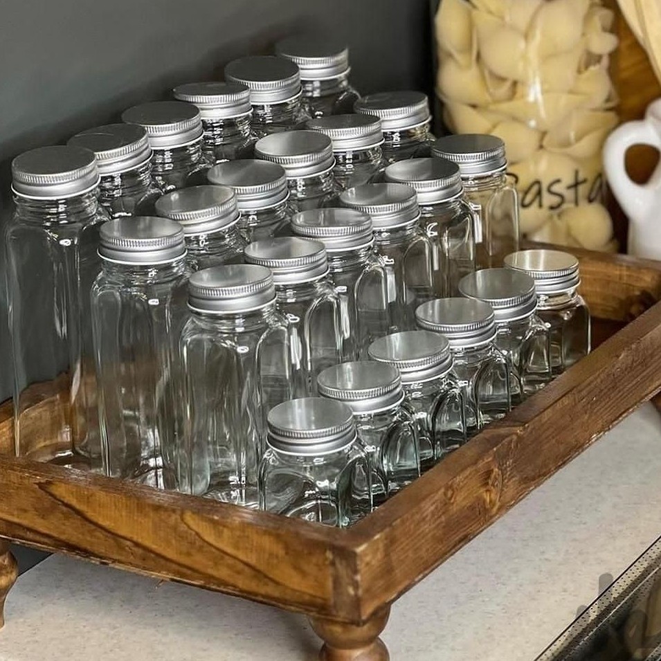*تخفیف ویژه سایز4 **** 🔴قیمت استثنایی 🔴 پرفروش ترین سایز شیشه های مک کارتی مناسب نظم دادن به کشوهای ادویه ●بهترین کیفیت بازار ✅سایز4 *ارتفاع12 *ضلع4.5 گنجایش :50تا 80 گرم ادویه و سبزی خشک ⭕به همراه یک عدد لیبل بدون نوشته ⭕مستطیل یا گرد بودن برچسب انتخابی را در قسمت گفت و گو برای ما ارسال کنید ●درب همه محصولات کانتینری میباشد