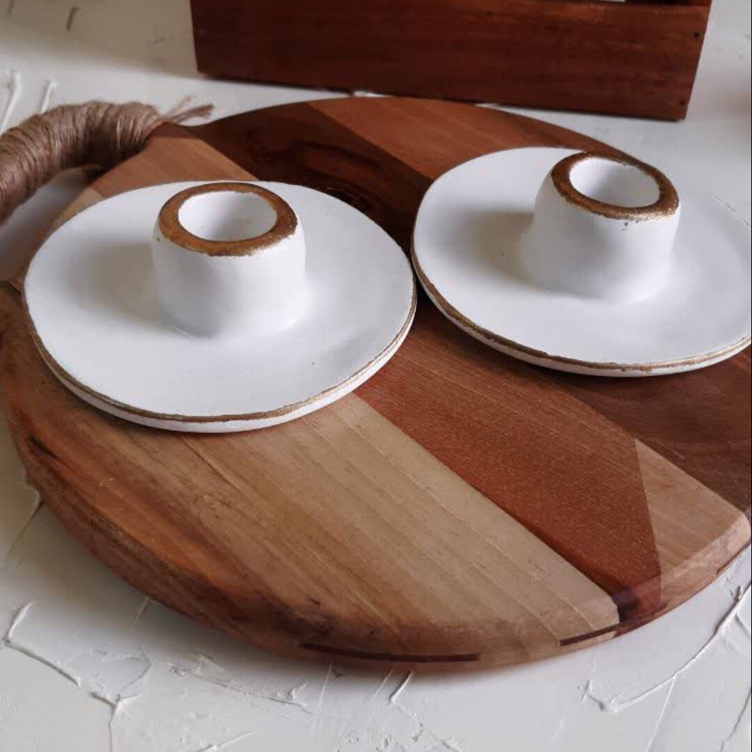 جا شمعی سنگ مصنوعی سفید با لبه طلایی یا نقره ای مبلمونسرا مدل 279819