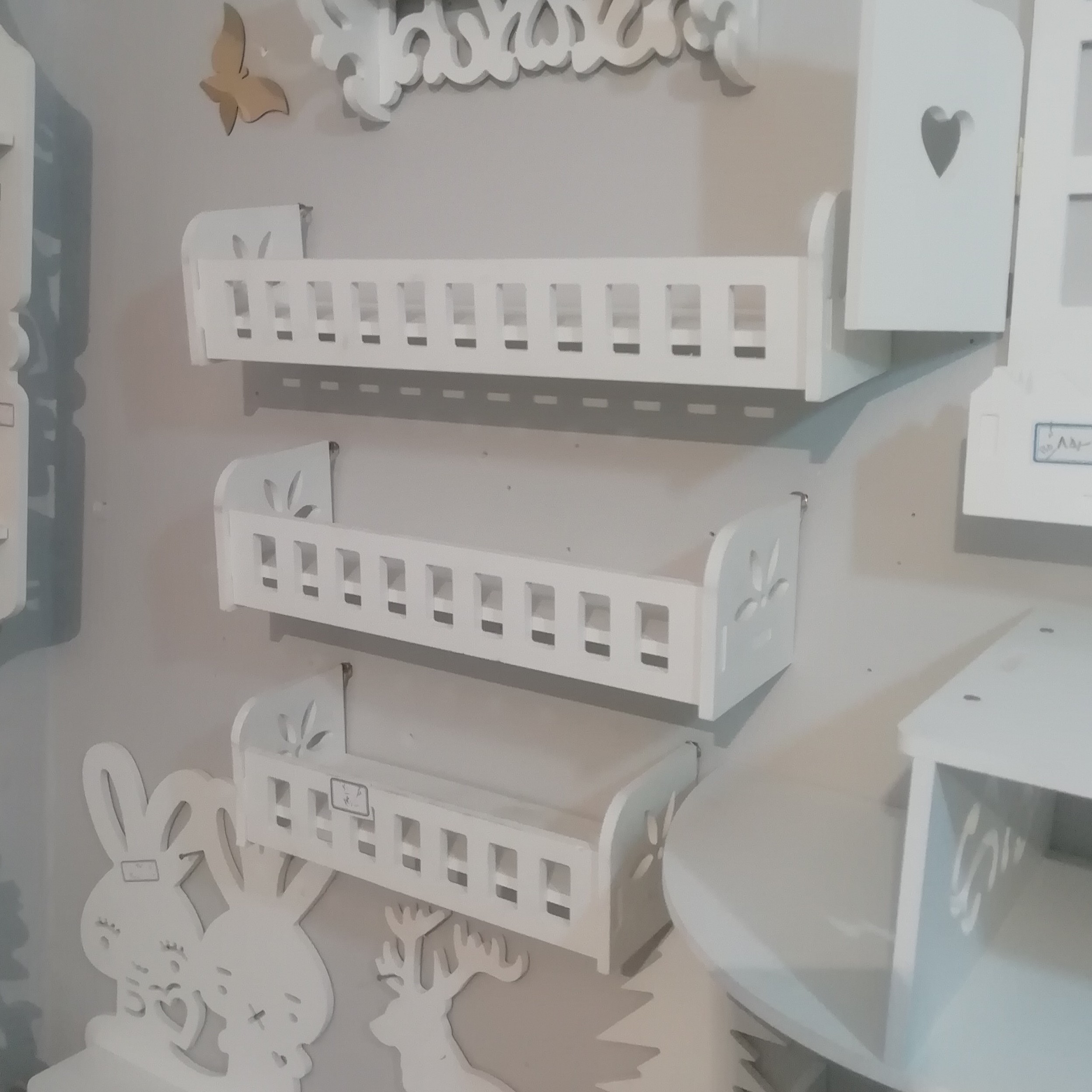 شلف دیواری جدید سه عددی طرح نرده ای شلف دیواری سه عددی 3 عددی دیواری قابل شستشو برای نظم دهی دکوری، اطاق کودک، اطاق خواب مبلمونسرا مدل 258582