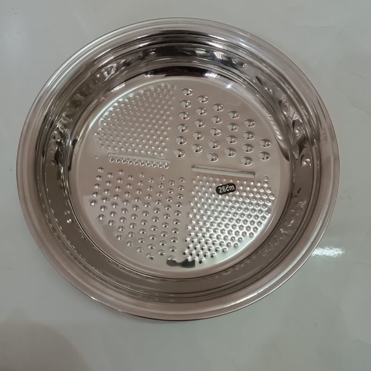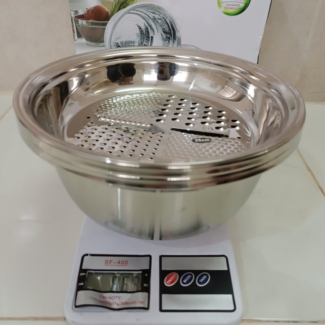 جنس : استیل ضد زنگ سایز: 26 سانتی متر تعداد: 3 تکه کیفیت: بسیار عالی ست آبکش و لگن رنده دار ،یک ابزار کاملا حرفه ای که شامل 3 تکه آبکش،لگن و رنده می باشد. هر سه کالا در سایز 26 سانتی متر تولید شده و از جنس استیل ضد زنگ هستند. که مقاومت و در عین حال کیفیت بسیار بالایی را دارند. ویژگی اصلی آبکش و لگن استیل رنده دار، قابلیت قرارگیری هر سه ظرف درون هم می باشد. بنابراین در هنگام استفاده نیاز به ظرف دیگری پیدا نمی کنید در صورت لزوم می توانید رنده را بر روی لگن و یا آبکش قرار دهید .