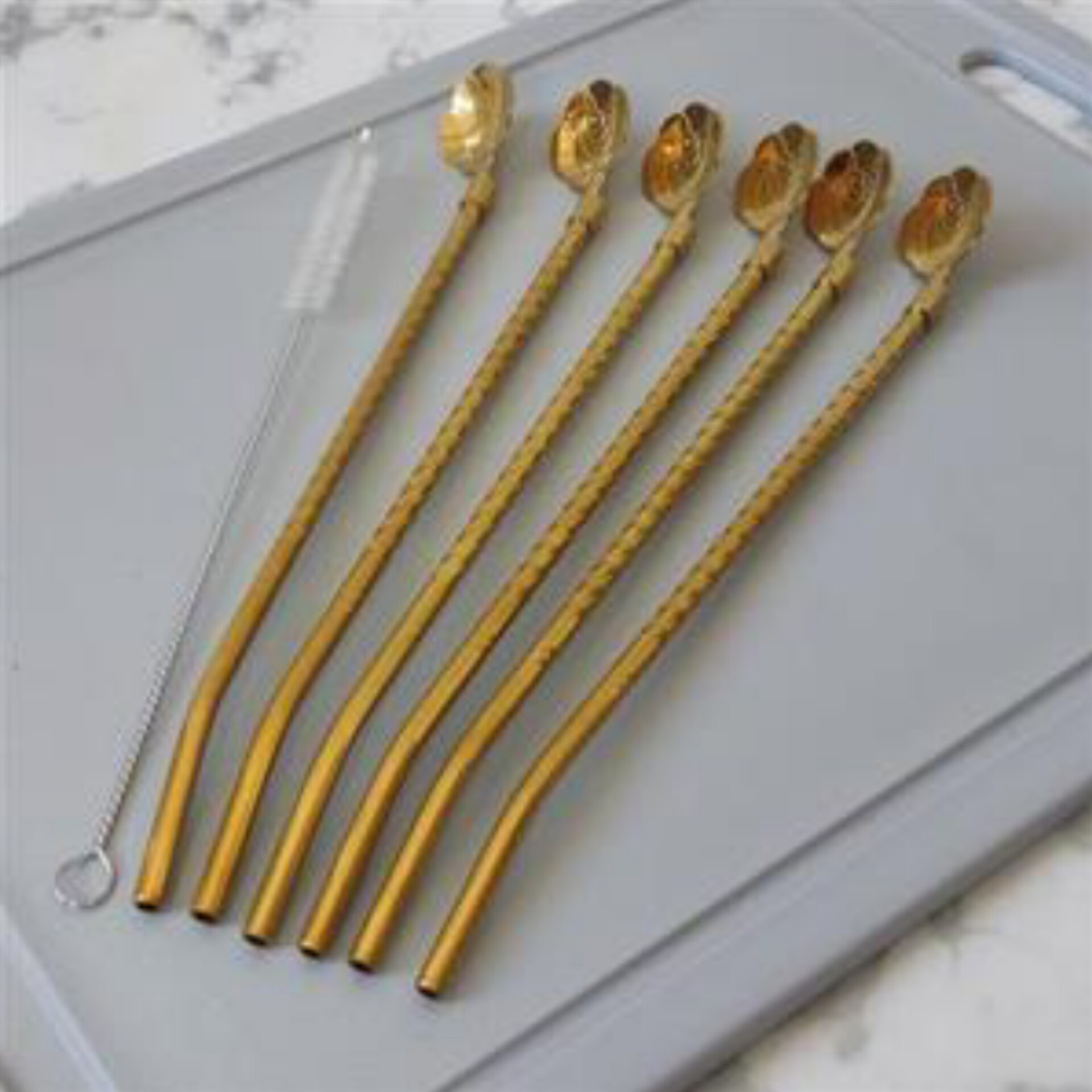 نی شربت استیل طلایی فرچه دار . نی شربتی پیچی نی شربتی طرح گل مبلمونسرا مدل 277693