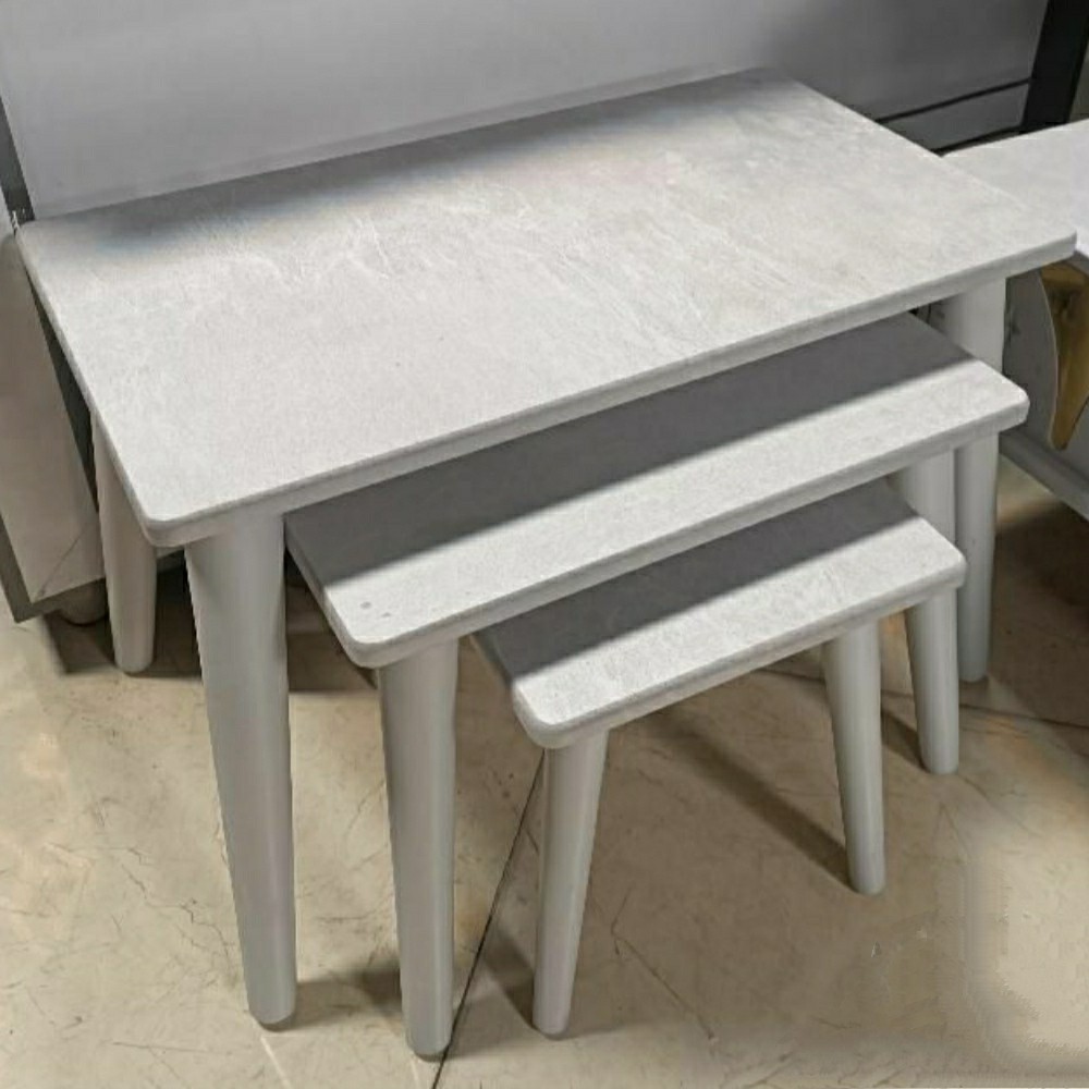 میز عسلی کمجا سری سه عددی مناسب پذیرایی رویه وکیوم رنگ های تیره و سفید و طوسی ابروبادی پایه پیچی پلی اتیلنی رنگ ثابت روکش وکیومی کیفیت خوب سایز بندی کار از 60 تا 35 در مدل خود رنگ پایه ها روشن تر از عکس هستن