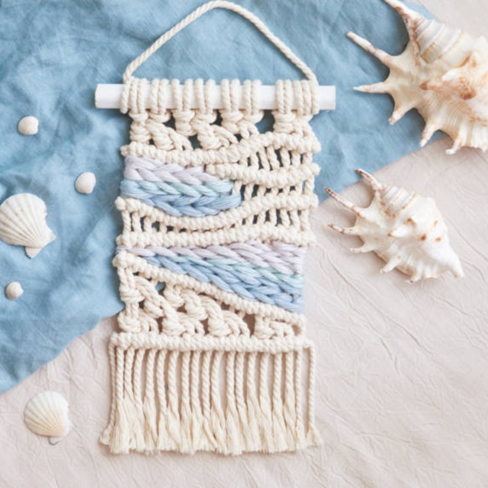 دیوارکوب مکرومه طرح فانتزی دریایی این محصول در ر رنگ و ابعاد دلخواه شما بافته میشه