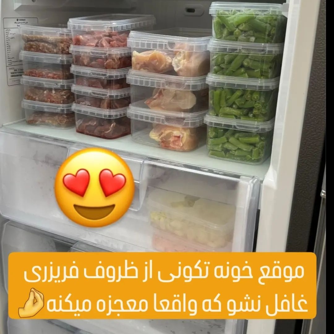 ظروف فریزری ✅ ظروف فریزری مخصوص فریزر و یخچاله ✅ اصلا تو فریزر ترک نمیخوره و نمیشکنه چون نماد انجماد داره ✅ پنج سایز کاربردی نماددار داره ✅ میتونید داخل مایکروفر هم بزارید ✅ قابلیت شستشو داخل ماشین ظرفشویی هم داره ✅ به هیچ عنوان هوا داخلش نمیره و مواد غذایی تغییر رنگ نمیده ✅ از مواد درجه یک تولید شده و مخصوص مواد غذایی گرم و سرده ✅ تفاوت دیگش با ظروف یکبار مصرف اینه که انعطاف پذیری داره👌 ✅ خلاصه از شر نایلون فریزر و کثیفی یخچال راحت میشین