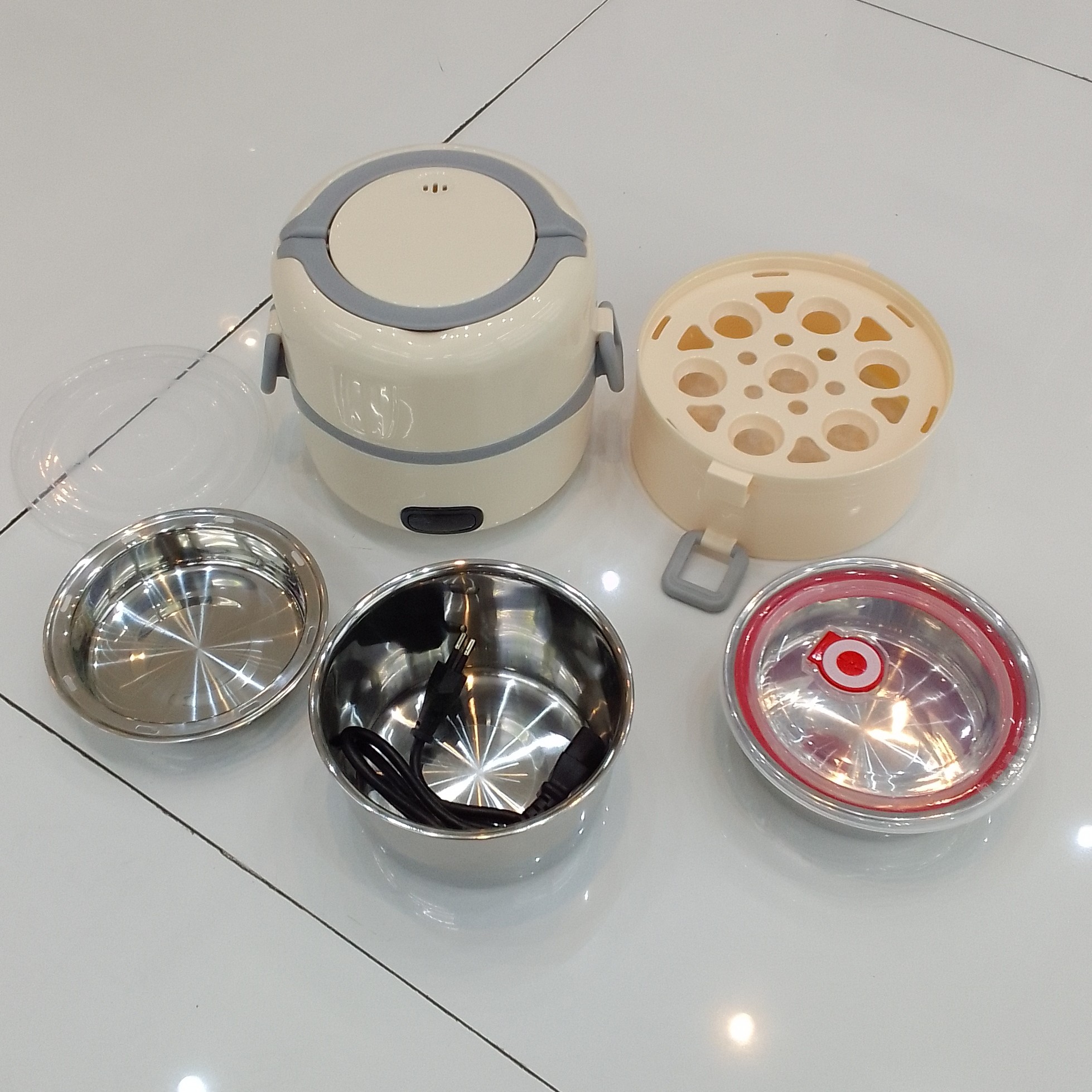 ظرف غذای برقی الگانت. مخصوص گرم کردن موادغذایی وهمچنین پختن تخم مرغ.قابلیت تبدیل به فلاسک غذای یک طبقه ودوطبقه. دارای2طبقه جهت تفکیک موادغذایی . مجهزبه3عدد ظرف استیل بادرب وکیومی. این ظرف رو ازطریق کابلی که داره میزنیدبه برق خودش گرم میکنه. مناسب کارمندان وکسانیکه وقت کمی برای گرم کردن وخوردن غذا دارند.ظرفیت2لیتر