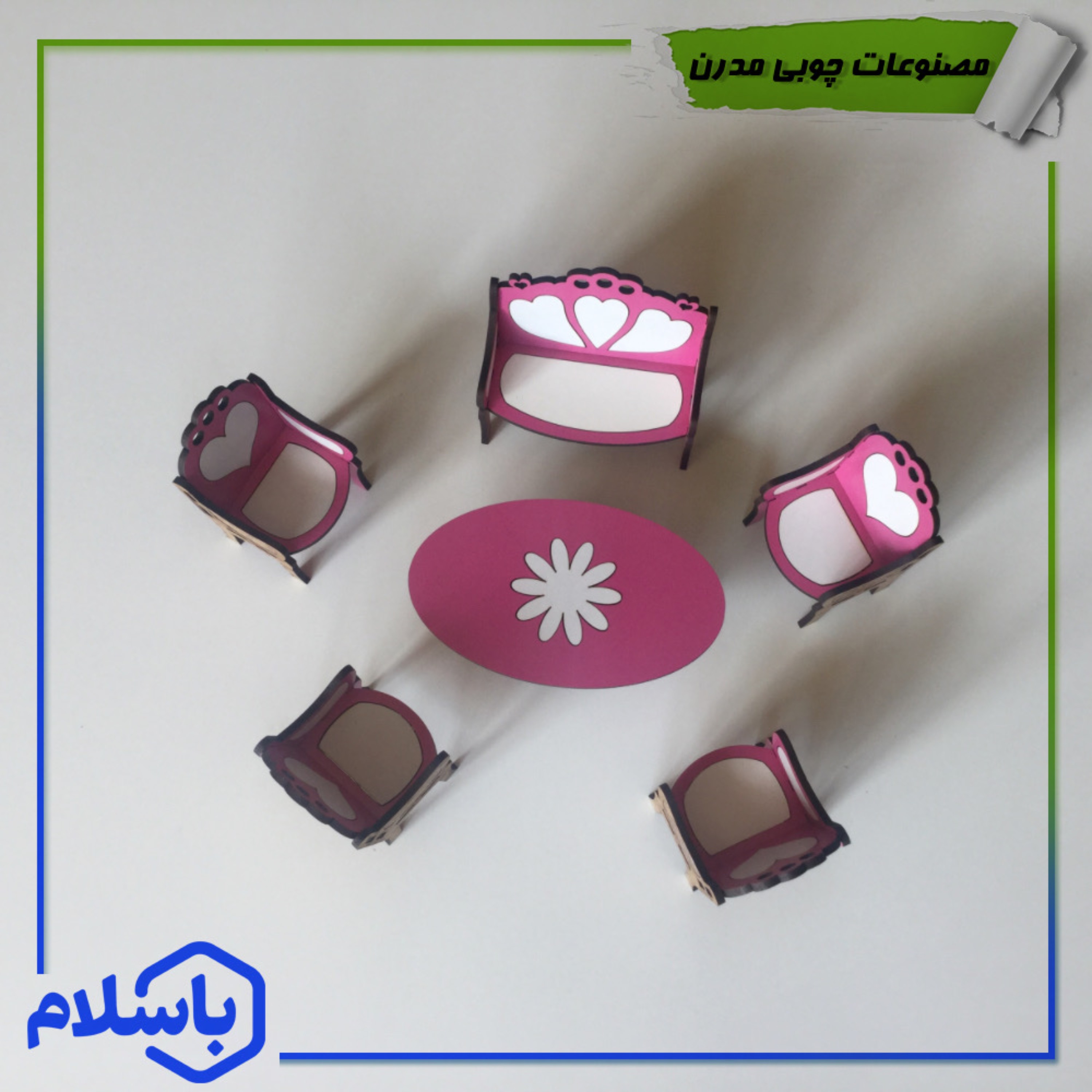 مبلمان چوبی هفت نفره دکوری صورتی و سفید مبلمونسرا مدل 212107