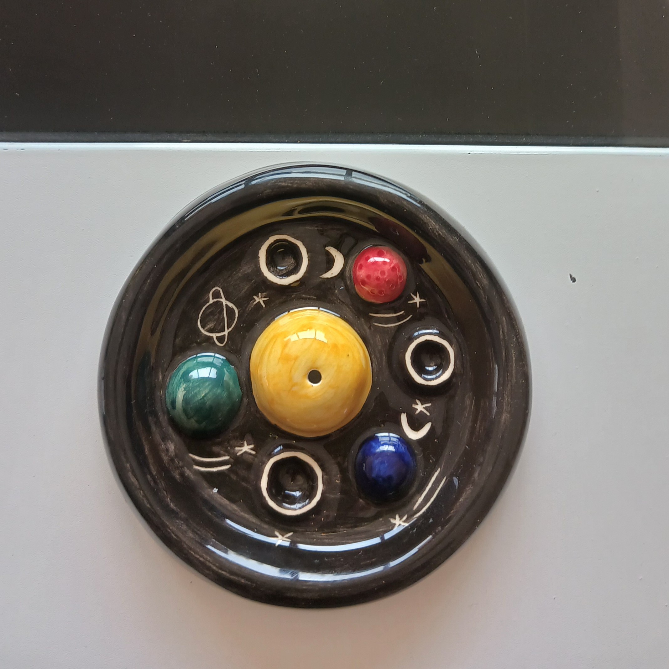 جا عودی سرامیکی کهکشانی برجسته .سیاره های برجسته رنگی.قطر 9 سانت.تک رنگ