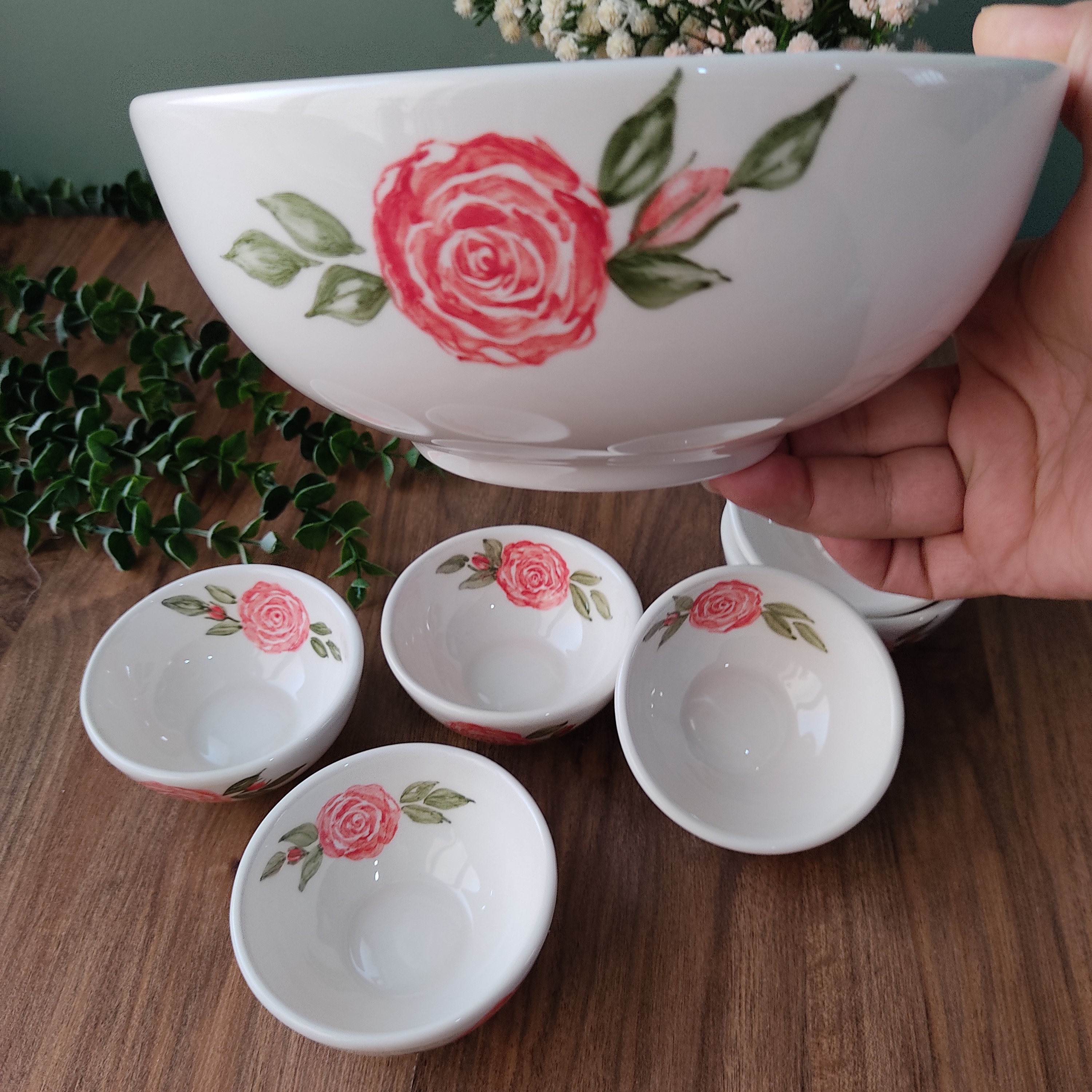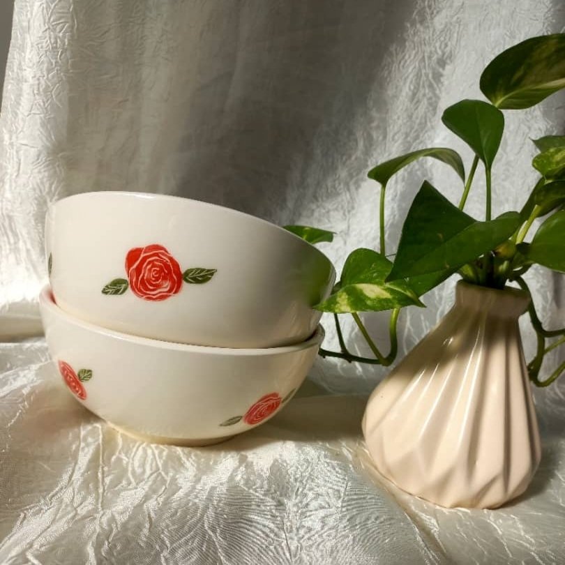 کاسه آبگوشت خوری طرح گل سرخ سرامیکی دست ساز نقاشی زیرلعابی مبلمونسرا مدل 291977