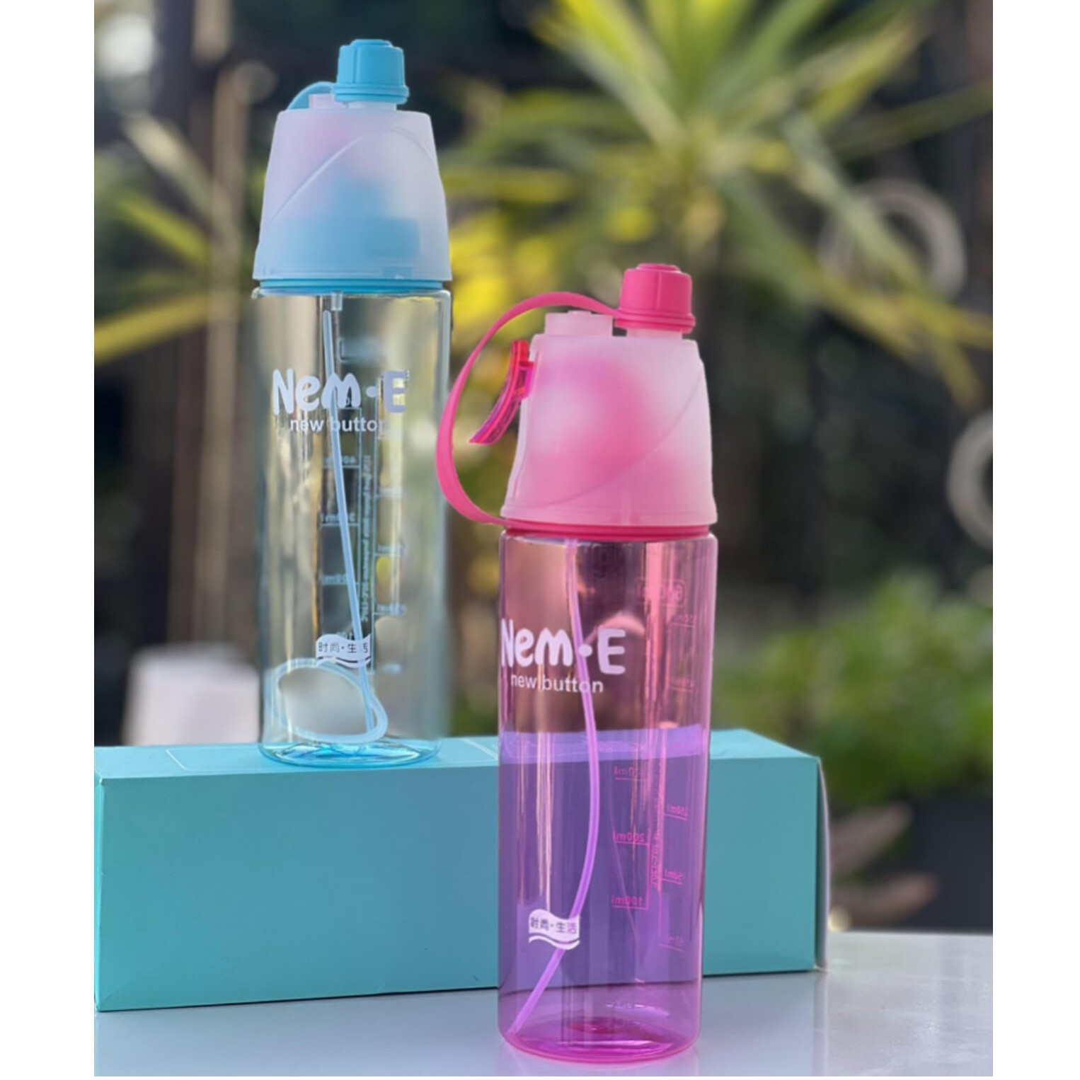 قمقمه اسپری دار NEM.E ابعاد: 26*7.9 جنس: پلاستیک بسیار مقاوم در مقابل ضربه حجم و گنجایش: 600 میلی لیتر رنگبندی جذاب و خاص دارای اسپری آب پاش برای خنک کردن صورت درپوش پیچی و واشر لاستیکی داخلی برای جلوگیری از نشت مایعات دستگیره برای اتصال به کوله پشتی و حمل آسان قابل استفاده در باشگاه، مسافرت و... محصول کشور چین
