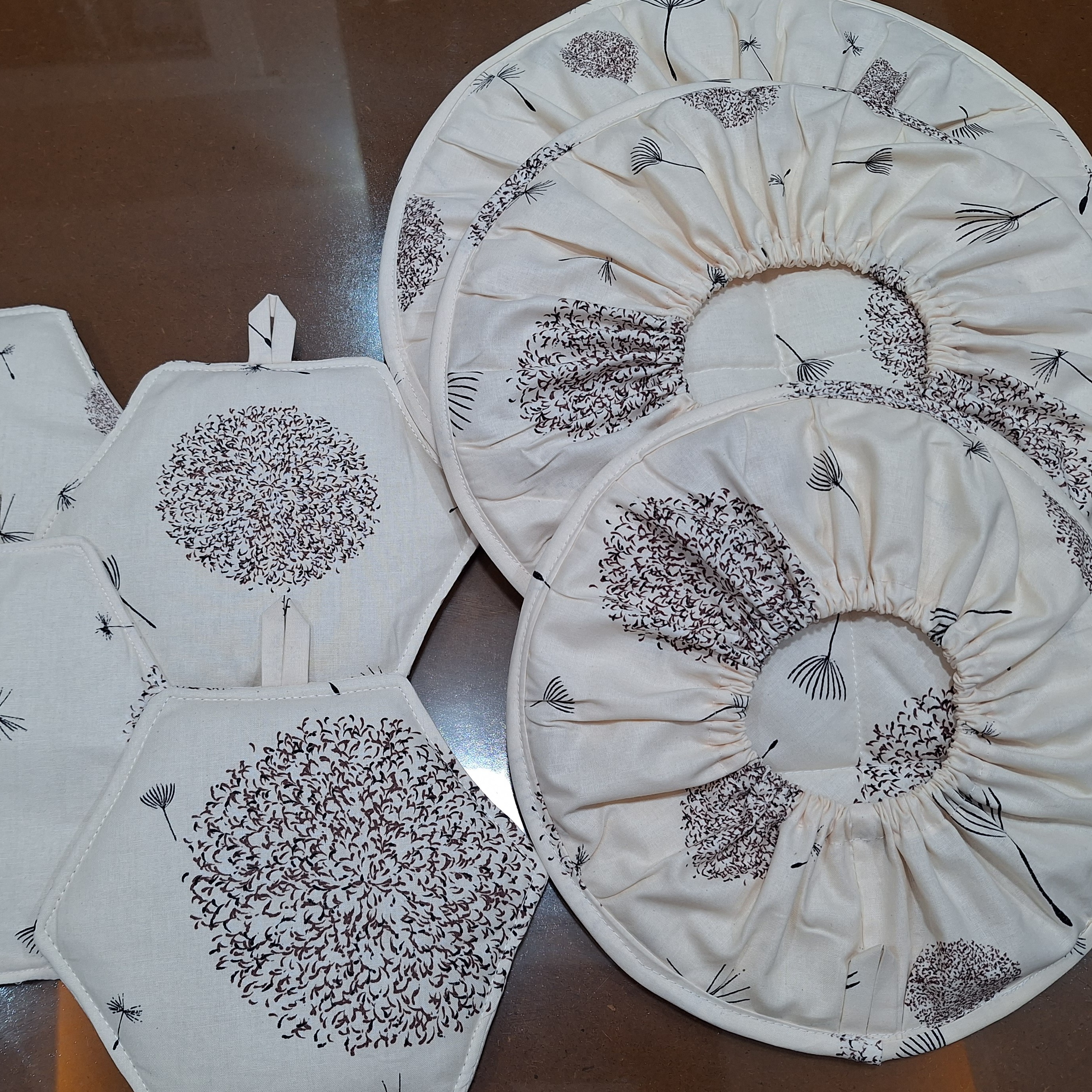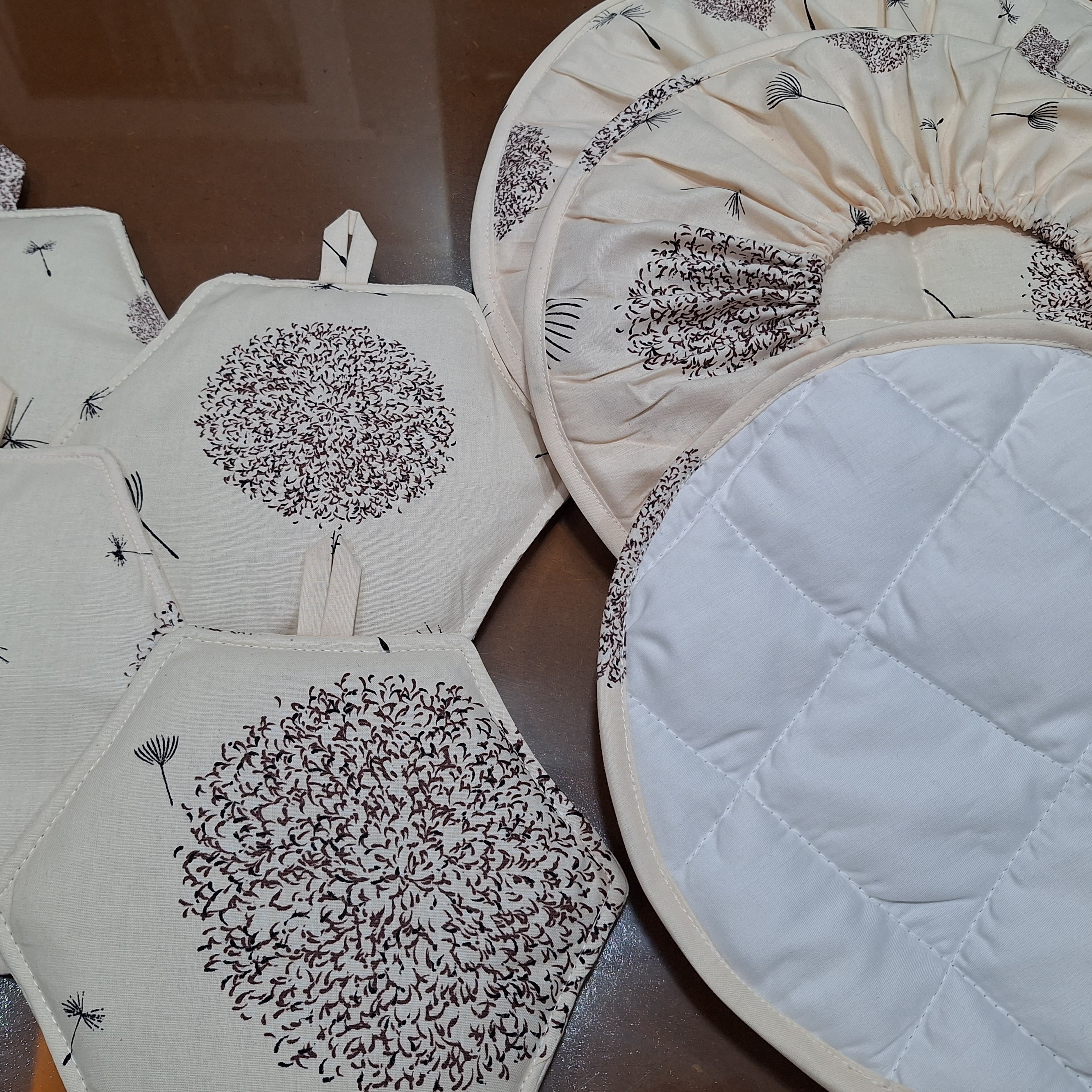 دمکن سه تیکه رنگ کرمی با جنس عالی پارچه تُرک نخ پنبه داخل پشمه شیشه با دوخت تمیز نوار دوزی با خود پارچه مناسب جاهاز عروس
