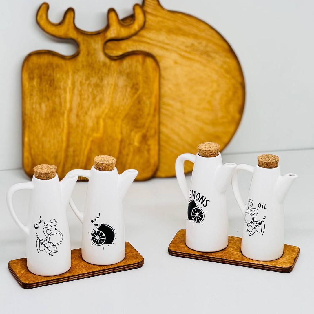 روغن ریز سرامیکی جفتی زیره چوب مدرن ست آبلیمو خوری و روغن ریز سرامیکی به همراه پایه استند مبلمونسرا مدل 293279