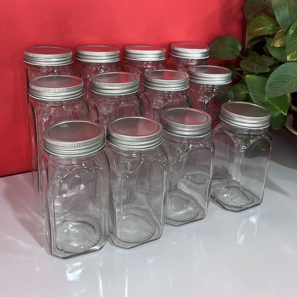️️️شیشه های مک کارتی برای نگهداری حبوبات، ترشی،مربا️️️ مناسب ️نگهداری حبوبات ️نگهداری مربا ️نگهداری ترشی ️نگهداری سبزیجات خشک رنگ: شفاف ✅سایز 1 ارتفاع: 22 سانتی متر, حجم:820 سی سی ✅سایز 2 ارتفاع : 19 سانتی متر حجم:680 سی سی ✅سایز 3 ارتفاع: 15 سانتی متر, حجم:520 سی سی ✅سایز 4: ارتفاع 10.5 سانتی متر حجم:320 سی سی ✅سایز :5 ارتفاع:7سانتی متر حجم:150سی سی قطر دهانه همه سایز ها : 6 سانتی متر ضلع : 7 سانتی متر ⬅️ درب همه محصولات کانتینری میباشد که اصلا مایع از آن به بیرون نشت نمیکند