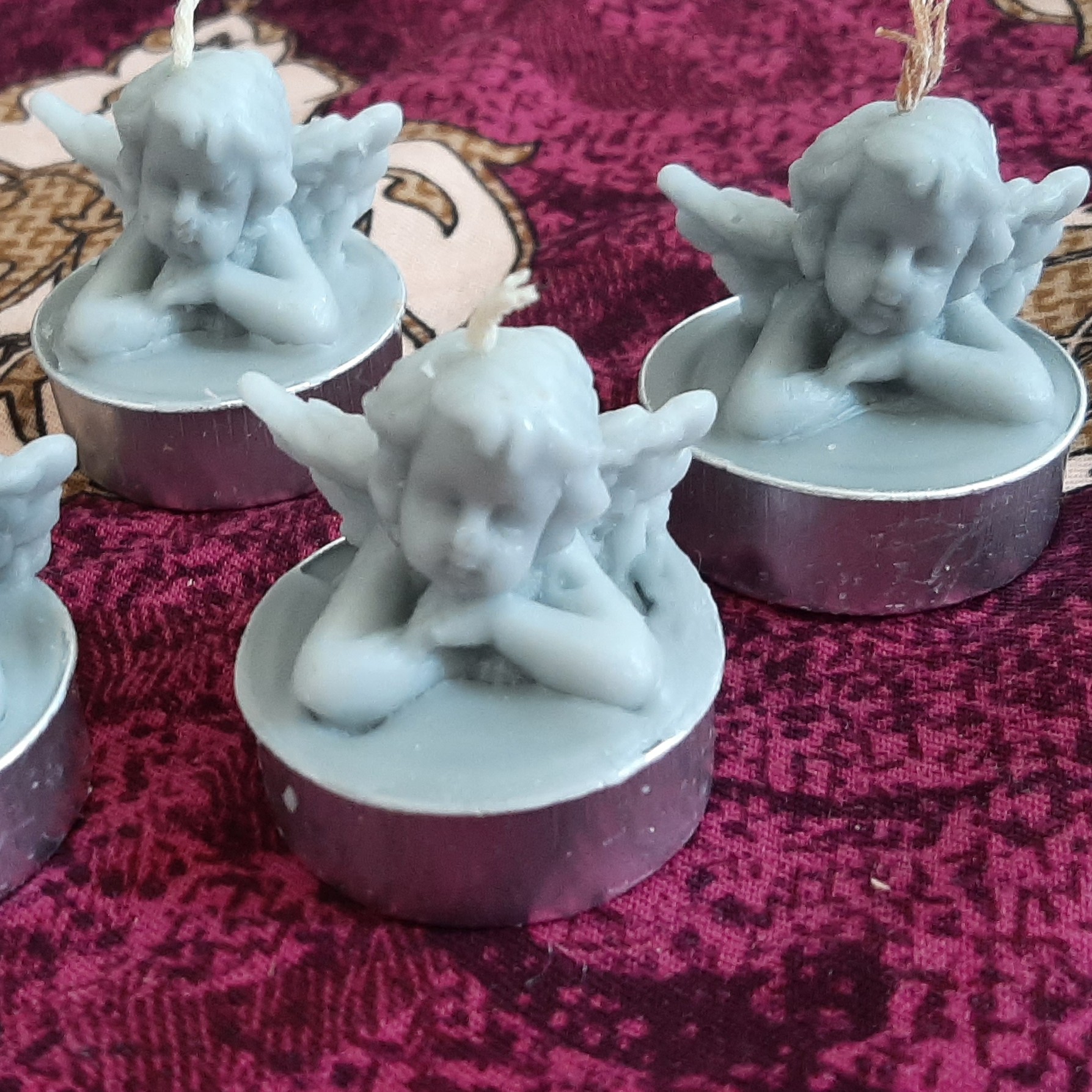 شمع مدل فرشته بالدار وارمر دار با فیتیله نسوز در رنگ طوسی و کرمی مناسب برای تولد ، جشن ، سفره هفتسین
