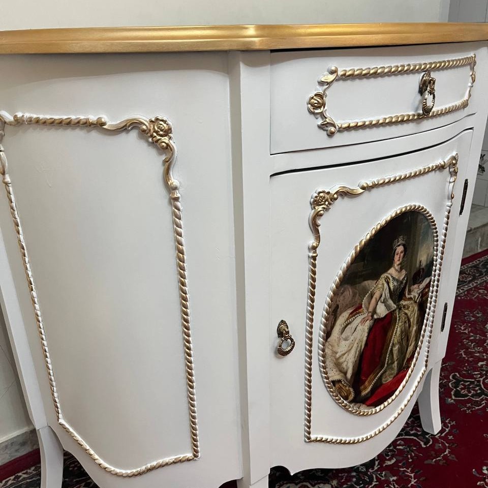 میز کنسول بازسازی شده کلاسیک چوبی دارای محافظ پلی اورتان ✓ استفاده شده از رنگهای هنری کادنس✓ طول عمر رنگ بالا✓ تضمین 2 ساله✓ پیشاپیش از اینکه ارزش کارِ دست رو درک میکنید سپاسگزاریم🌿 ساکنین تهران برای خرید میتونید در قسمت گفتگو با بنده هماهنگ کنید و بصورت حضوری به کارگاه تشریف بیارید و کنسول مورد نظر رو تهیه کنید✓ تمامی کنسول ها با هر رنگی قابل سفارش هستند✓ مبدا ارسال : تهران ارسال به سراسر ایران امکان پذیره. هزینه ارسال به شهرستان حدوداً 800 هزار الی 3 میلیون تومان بستگی به فاصله نسبت به تهران دارد و پرداخت بصورت و درب منزل میباشد. توجه : هزینه ارسال ممکن است با مبلغ ذکر شده مقداری تفاوت داشته باشد ، چنانچه میخواهید از هزینه ی دقیق مطلع شوید حتما از قسمت گفتگو برای هزینه باربری تا مقصد مورد نظر استعلام قیمت کنید. سفارش قاب آیینه امکان پذیره، برای سفارش قاب آیینه لطفا از قسمت گفتگو هماهنگ کنید.