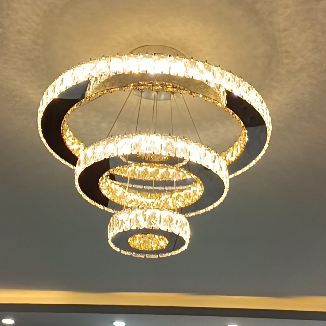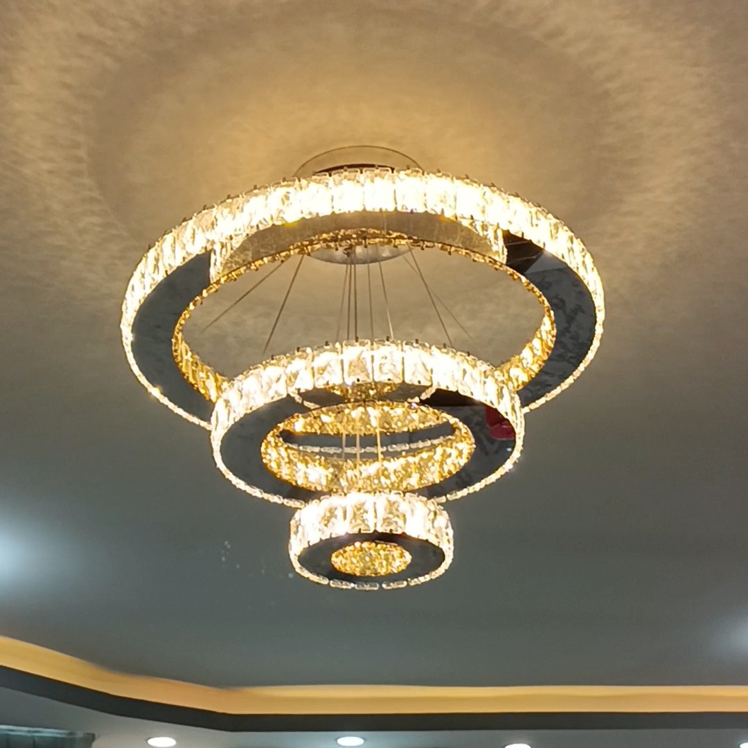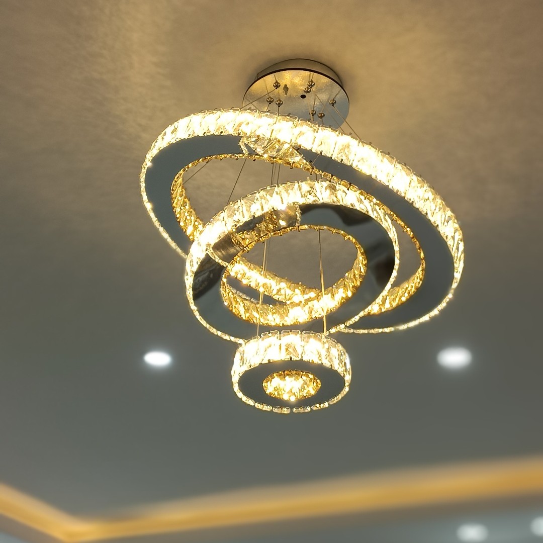 لوستر مدرن دایره سایز 60-40-20 دارای سه رنگ 4حالته قابلیت اتصال به گوشی کریستال 3*5 فروش به قیمت تولیدی