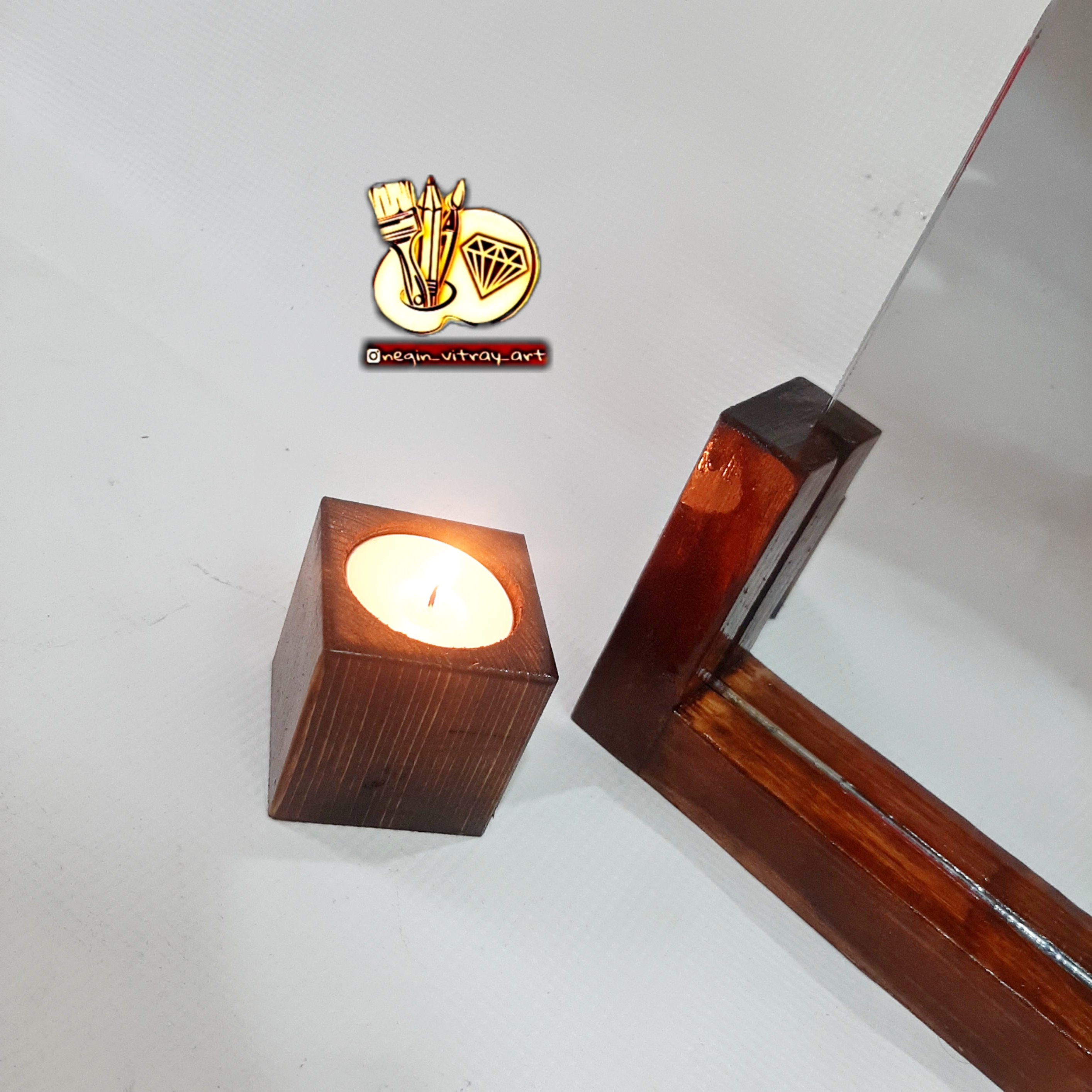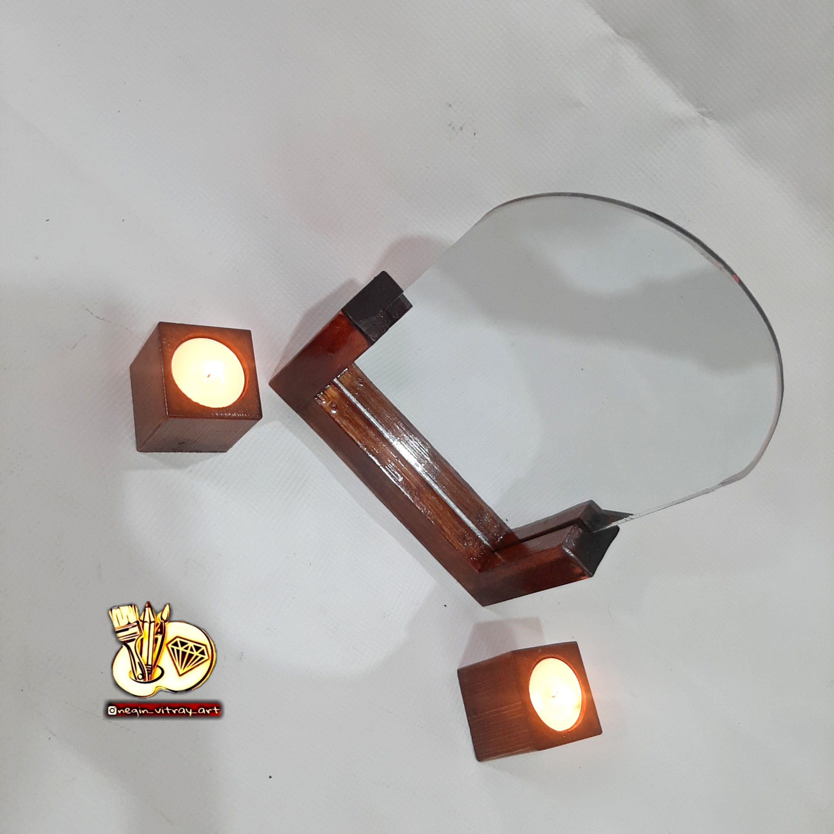 آینه گنبدی با پایه چوبی و جاشمعی چوبی مکعبی مناسب هفت سین مبلمونسرا مدل 262865
