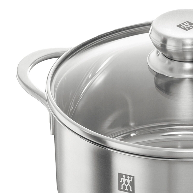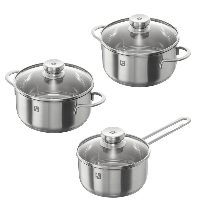 ست Zwilling Twin Nova مجموعه ای عالی برای هر آشپزخانه ای است، شامل یک قابلمه 16 سانتی متری، قابلمه 20 سانتی متری و قابلمه 24 سانتی متری (1.5L/3L/6L) است. این ست که از فولاد ضد زنگ با لایه آلومینیومی طراحی شده اند، ضد خش هستند و توزیع سریع و یکنواخت گرما را ارائه می دهند. این مجموعه دارای درب های شیشه ای است تا بتوانید بدون گرما به غذای خود توجه کنید و طعم ها و مواد مغذی لذیذی را در خود جای دهید. مناسب برای همه اجاق ها از جمله القایی، مجموعه تابه دارای دسته های ارگونومیک برای مانور آسان در اطراف آشپزخانه شما است. از سوپ گرفته تا تمامی غذا های خانگی، می توانید طیف وسیعی از دستور العمل ها را به راحتی بدون پاشش طبخ کنید.
