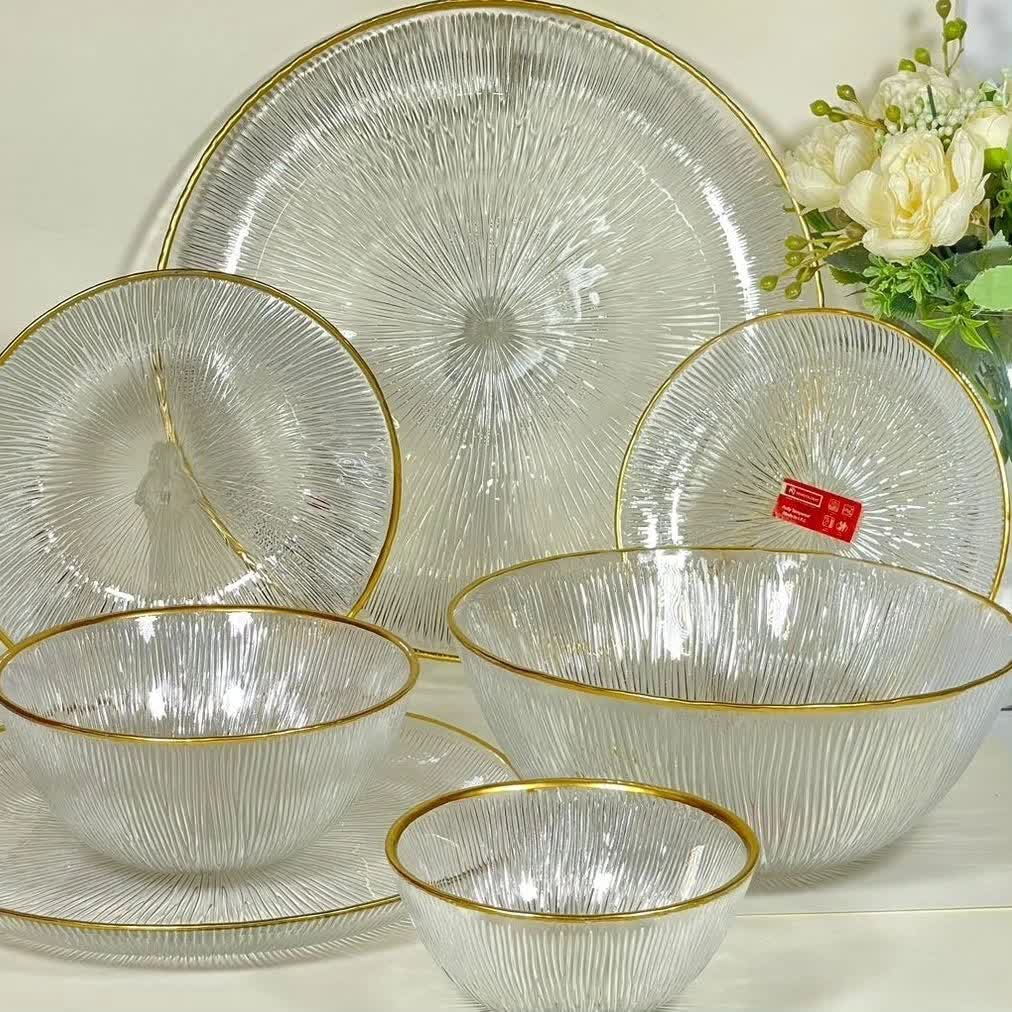 ست زیبای سولو پارچ و لیوان جزو سرویس نمیباشد قابل استفاده در ماشین ظرفشویی و ماکروفر نمیباشد ◀️ سرویس 33 پارچه غذاخوری solo لب طلا نشکن ◀️ فوق العاده زیبا و با کیفیت صادراتی ⏪بسته بندی عالی غیر قابل شکست 🛒 سرویس شامل 6عدد پیش دست،6 عدد پیاله ماست،6 عدد پلوخوری ،6عدد خورشت خوری،6 عدد کاسه سوپ خوری،یک عدد کاسه بزرگ 2عدددیس سرویس 33پارچه سولو لب طلا