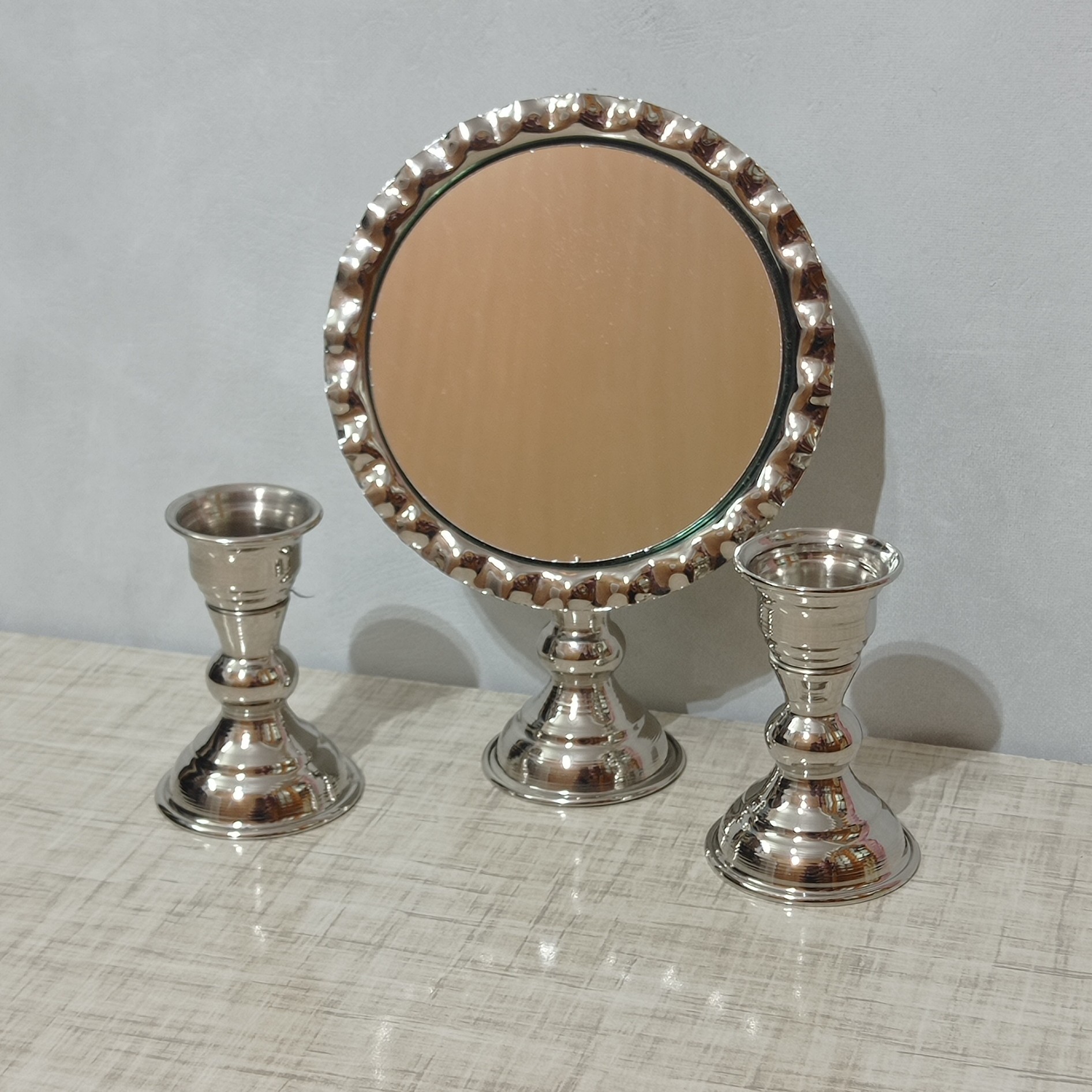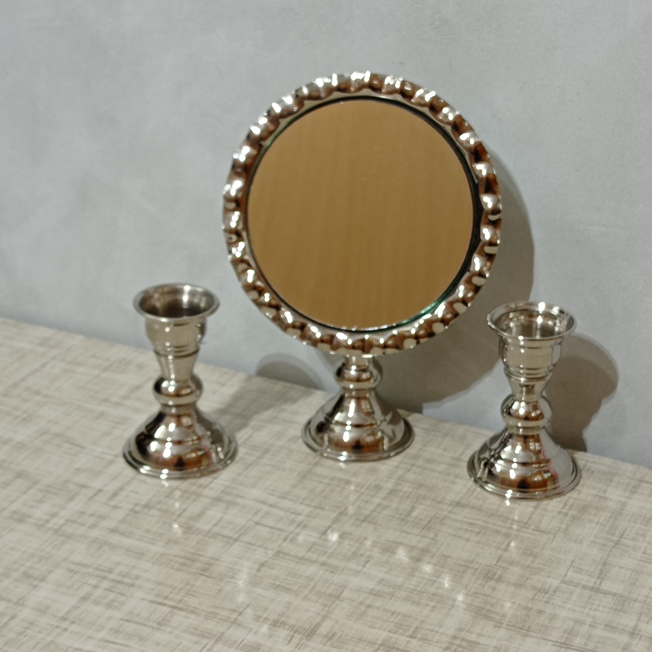 آینه شمعدان مسی کروم نقره ای سفید هفت سین سفره عقد مبلمونسرا مدل 282820