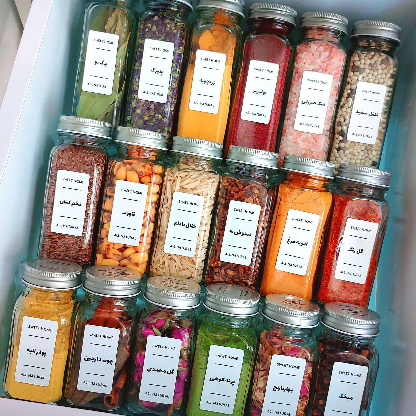 چیدن شیشه های ادویه مک کارتی داخل کشو
