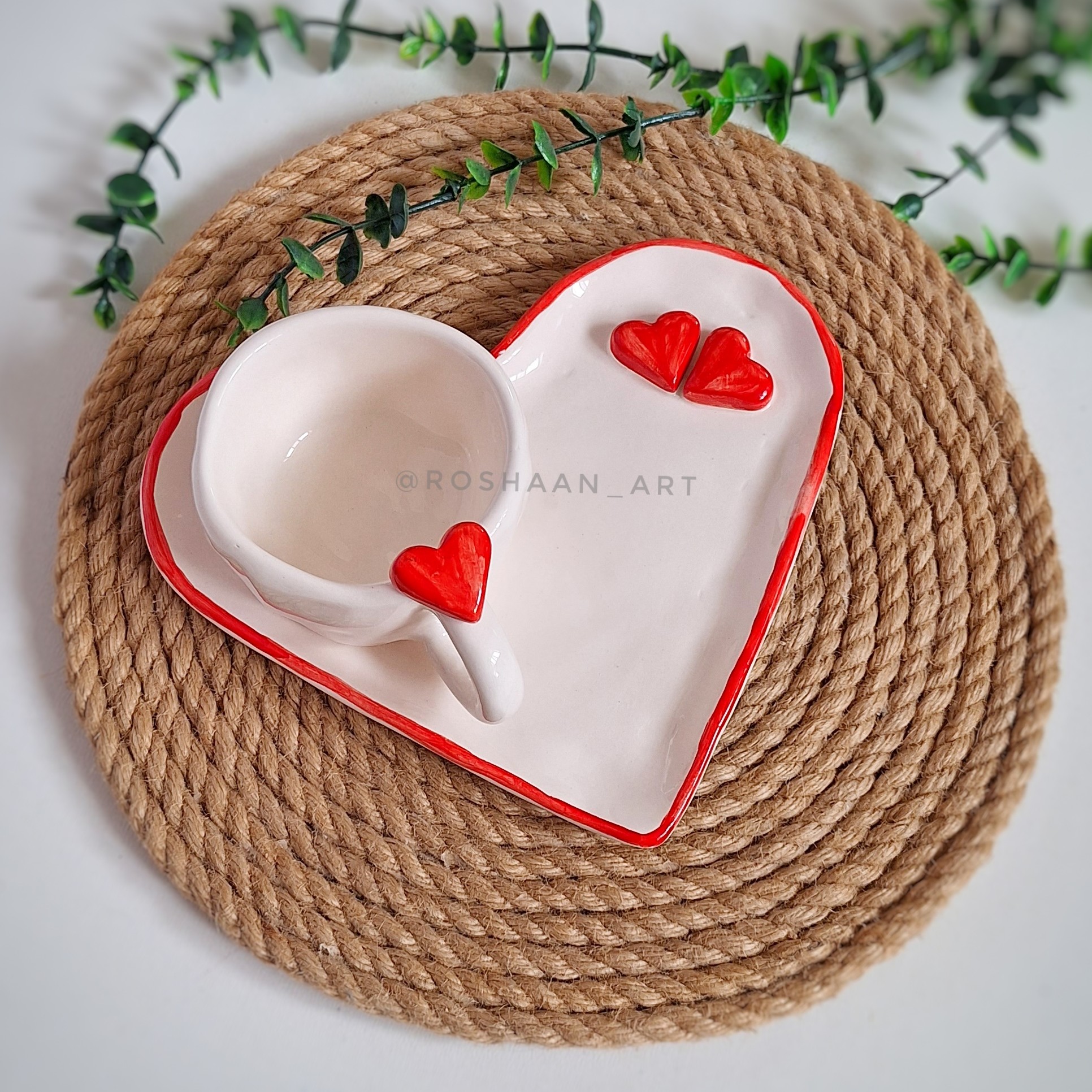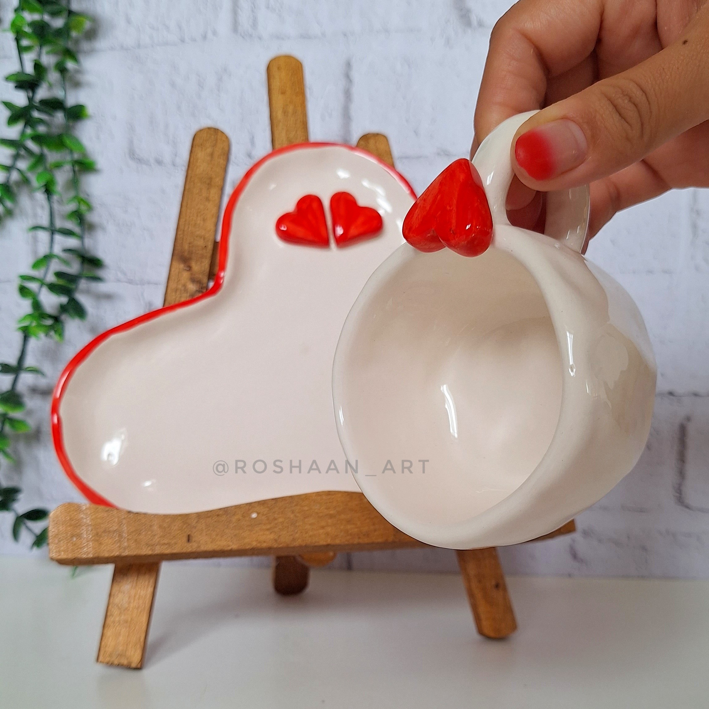 ماگ فنجون زیره بشقاب ظرف قلبی دستساز مبلمونسرا مدل 290596
