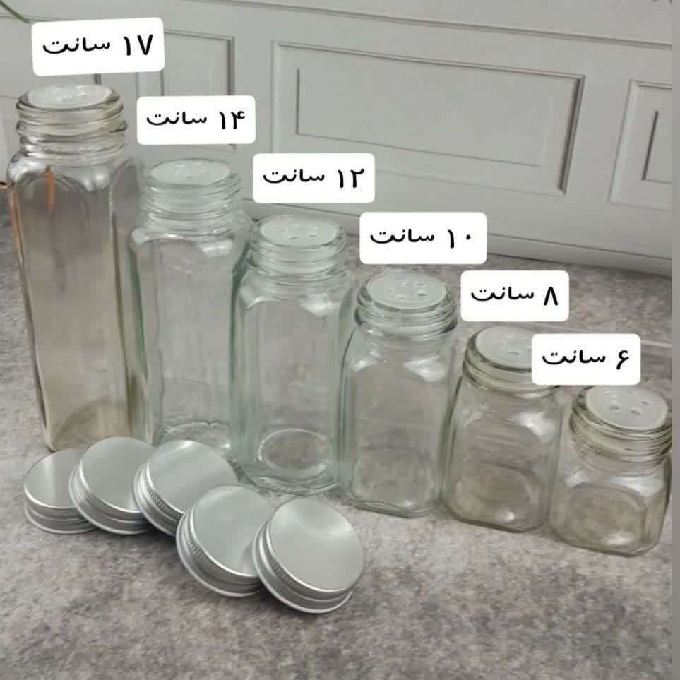 شیشه مکارتی درب کانتینری 14 سانت همراه لیبل ضدآب و سری ادویه پاش مبلمونسرا مدل 288248