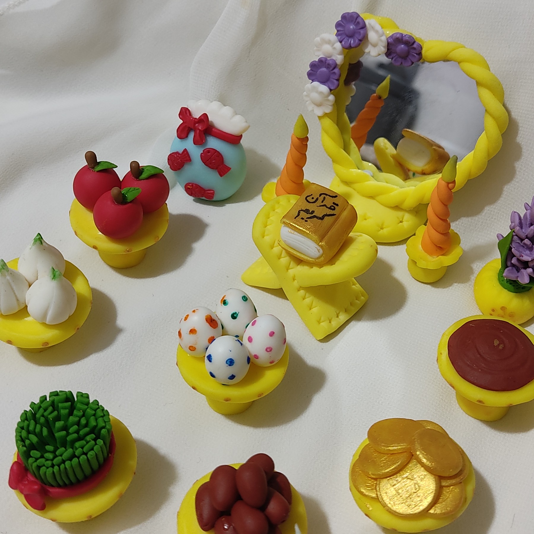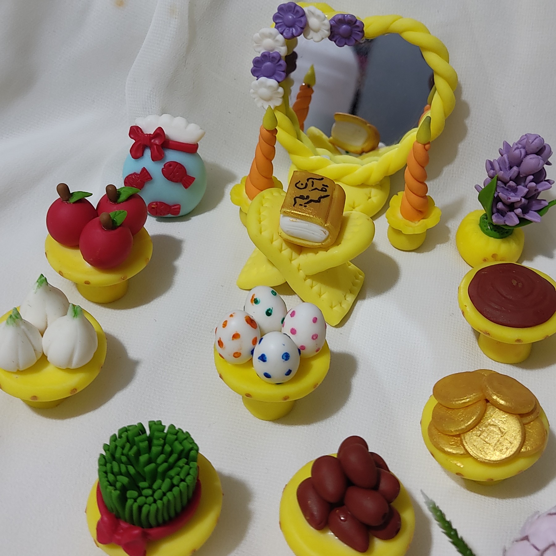 ست هفت سین با آینه و شمعدان کاملاًدست ساز و ساخته شده با خمیر ایتالیایی قابل سفارش با نماد سال مبلمونسرا مدل 262911