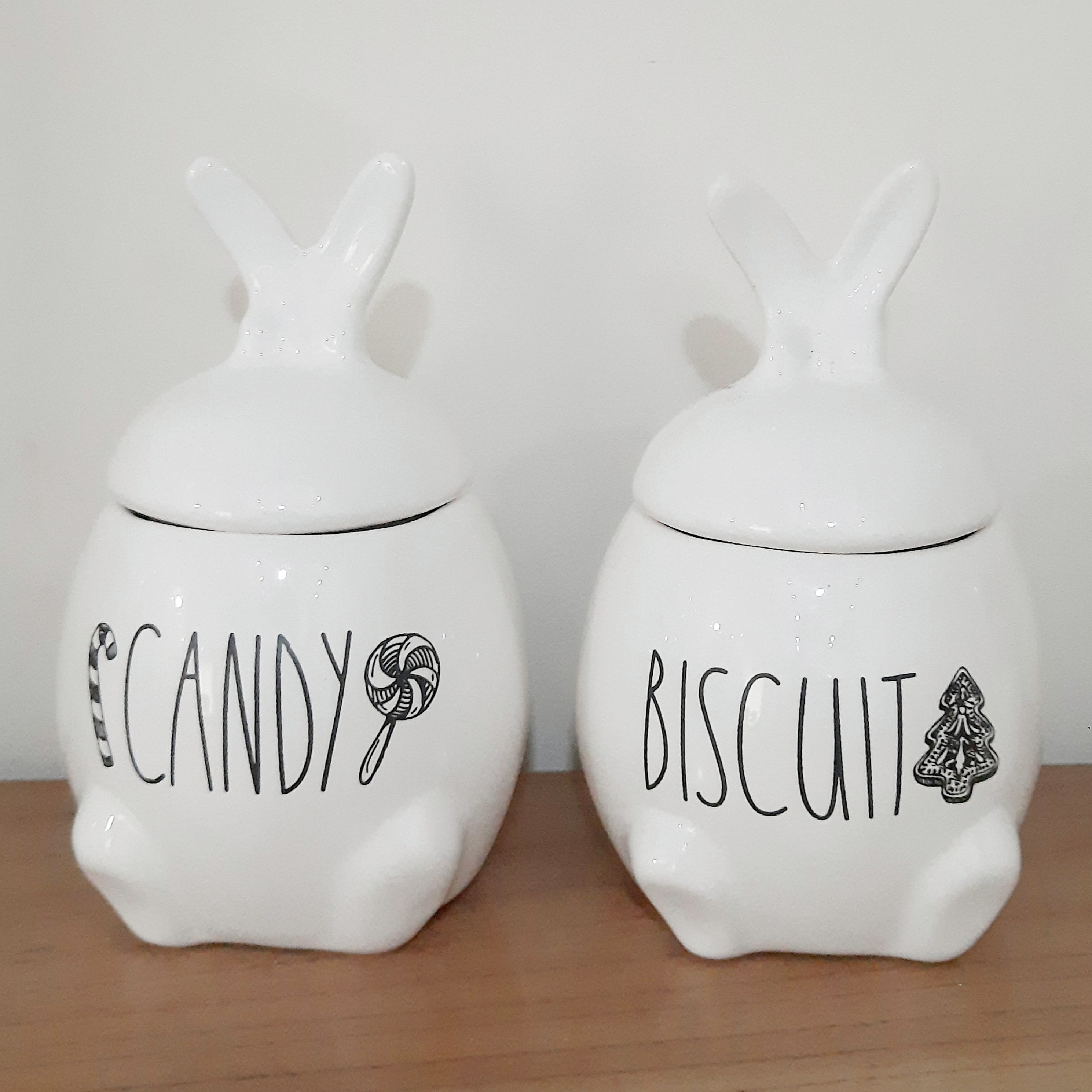 شکلات خوری خرگوش با نوشته های Biscui،Candy به انتخاب مشتری مناسب برای نگهداری خوراکی در آشپزخانه،پذیرایی و دکور میز وسط و... لعاب دورو بهداشتی تکست ها کوره ای قابل شستشو بدون تغییر رنگ